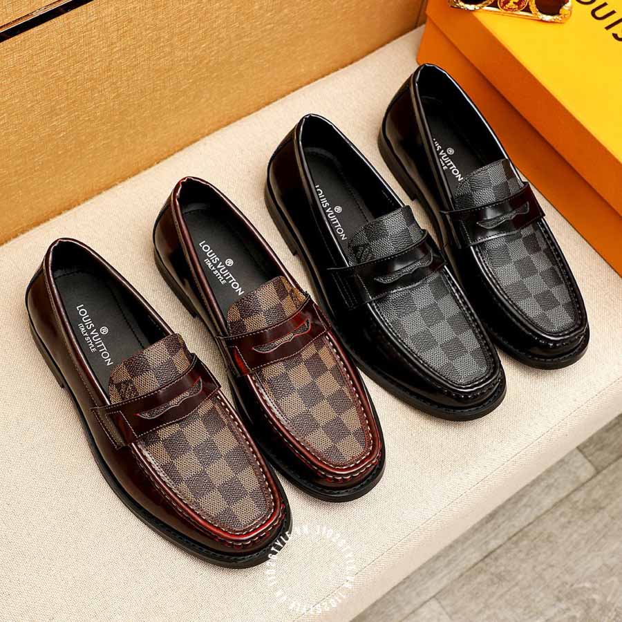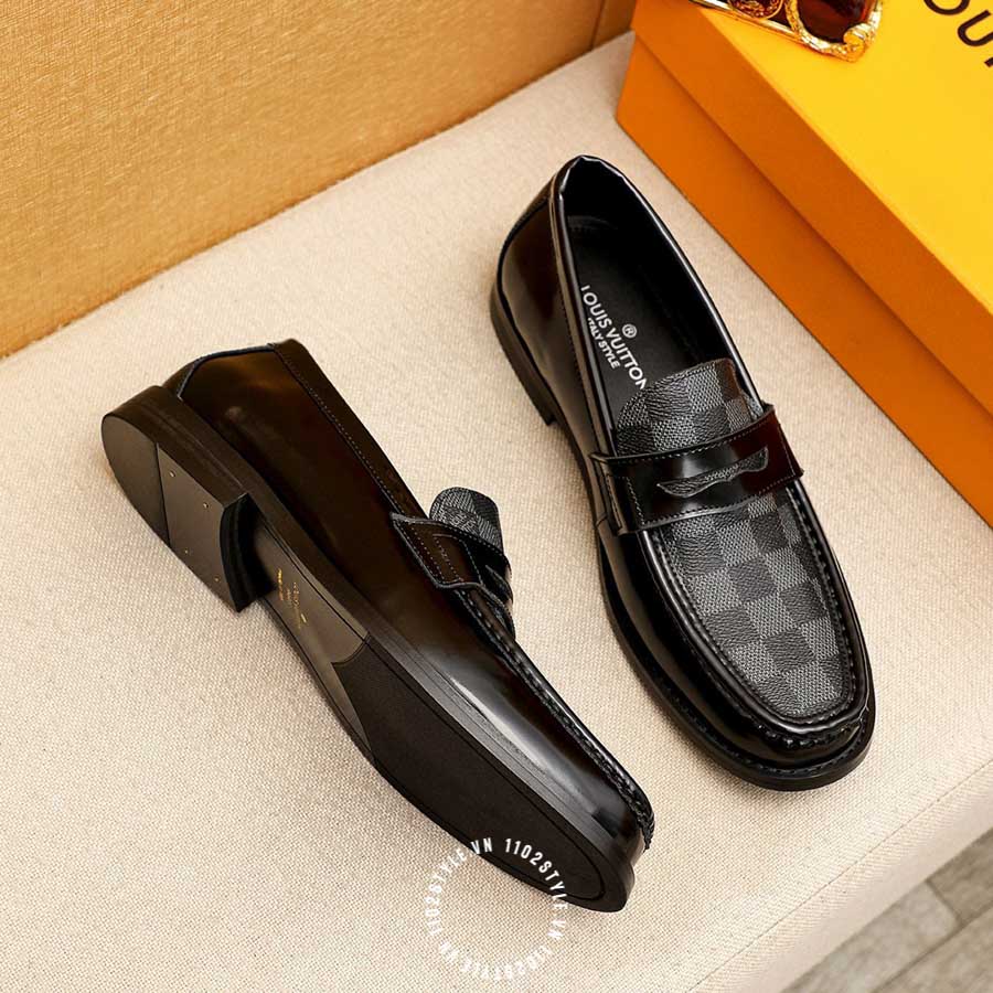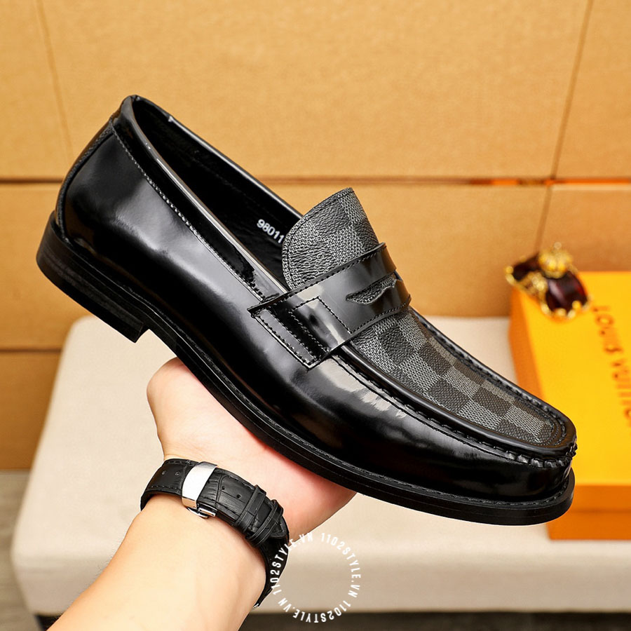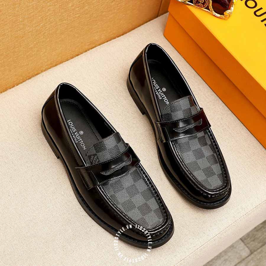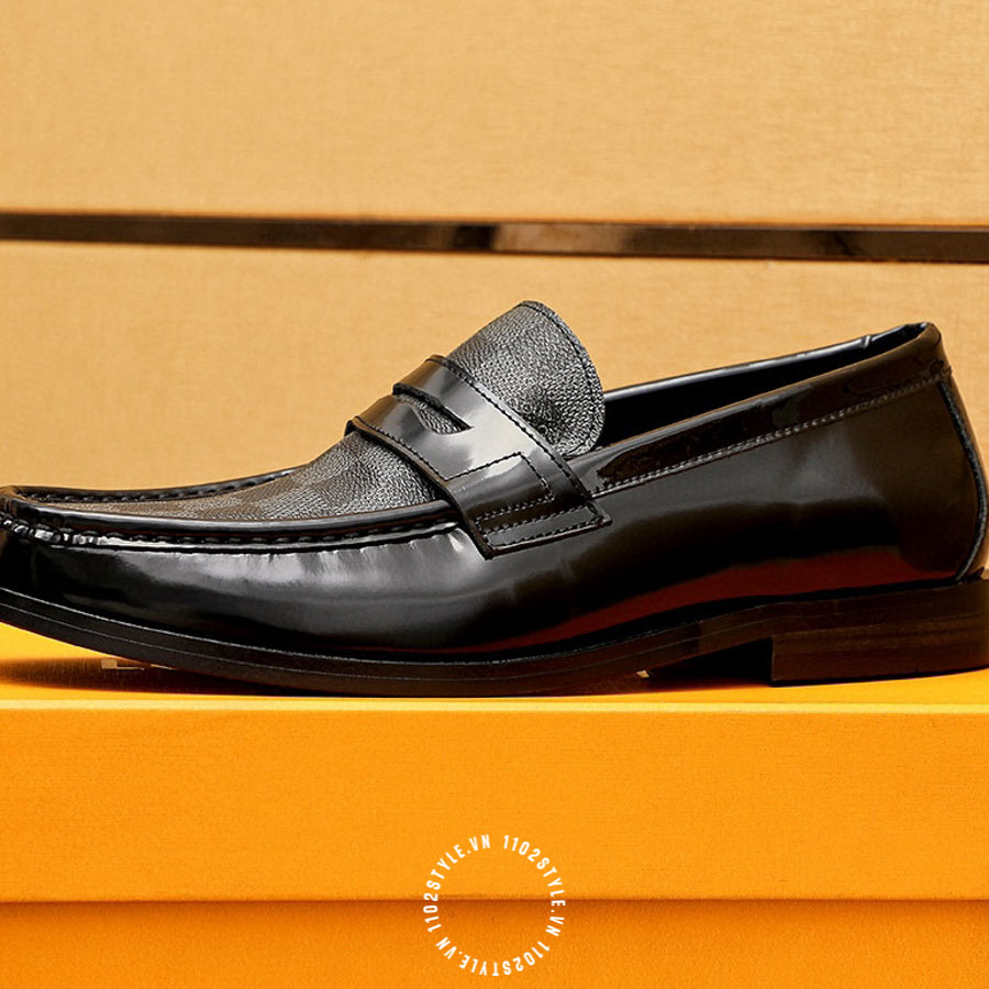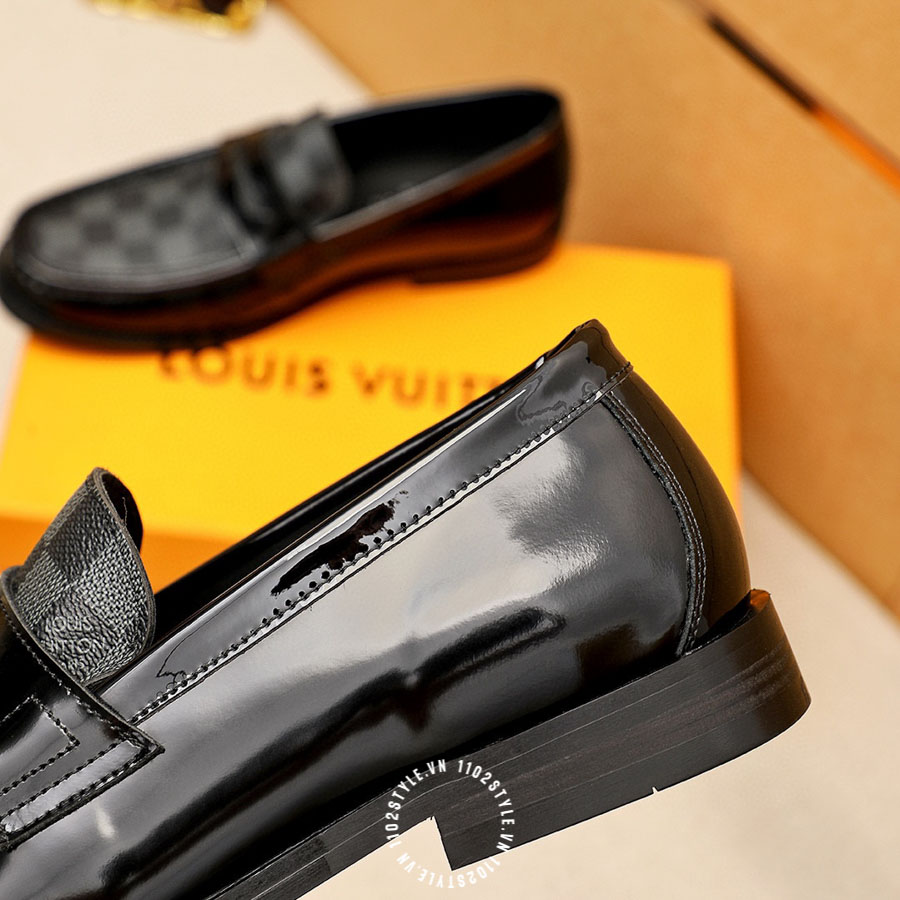 Giày loafer LV da sần màu đen hàng hiệu NJNJ06