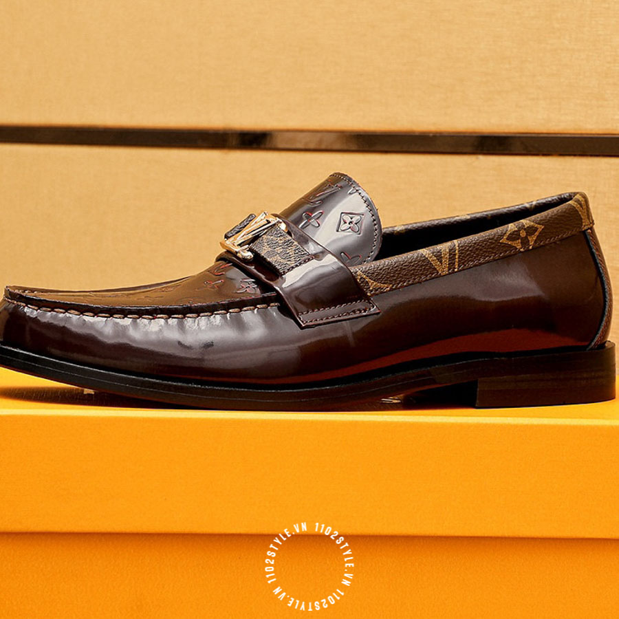 Giày loafer LV logo màu nâu hàng hiệu NJNJ03