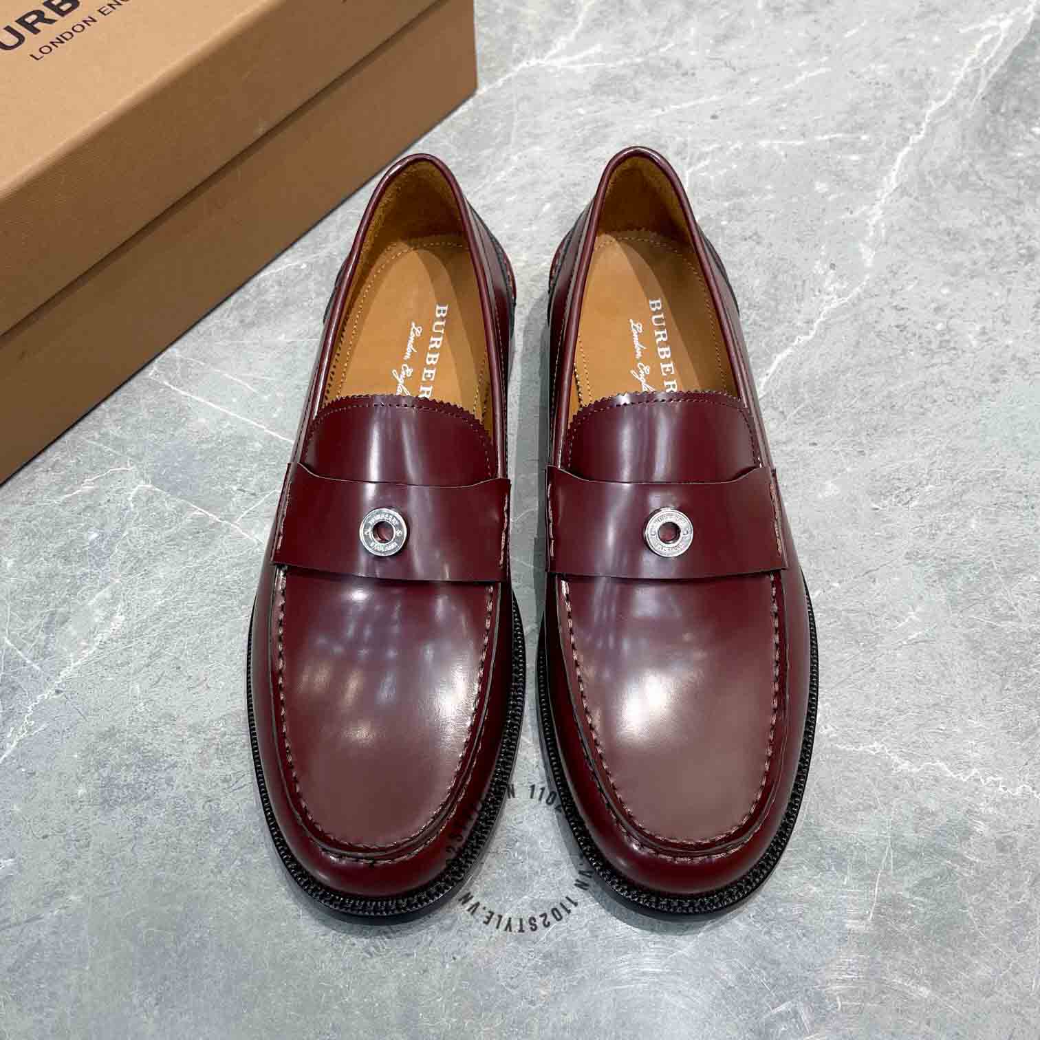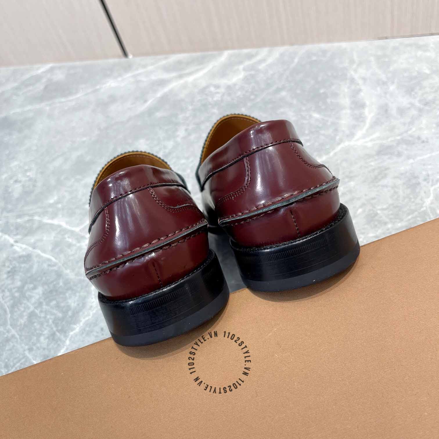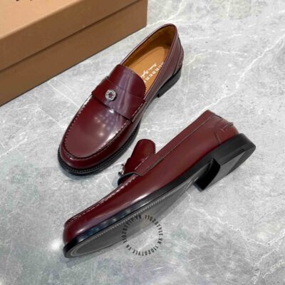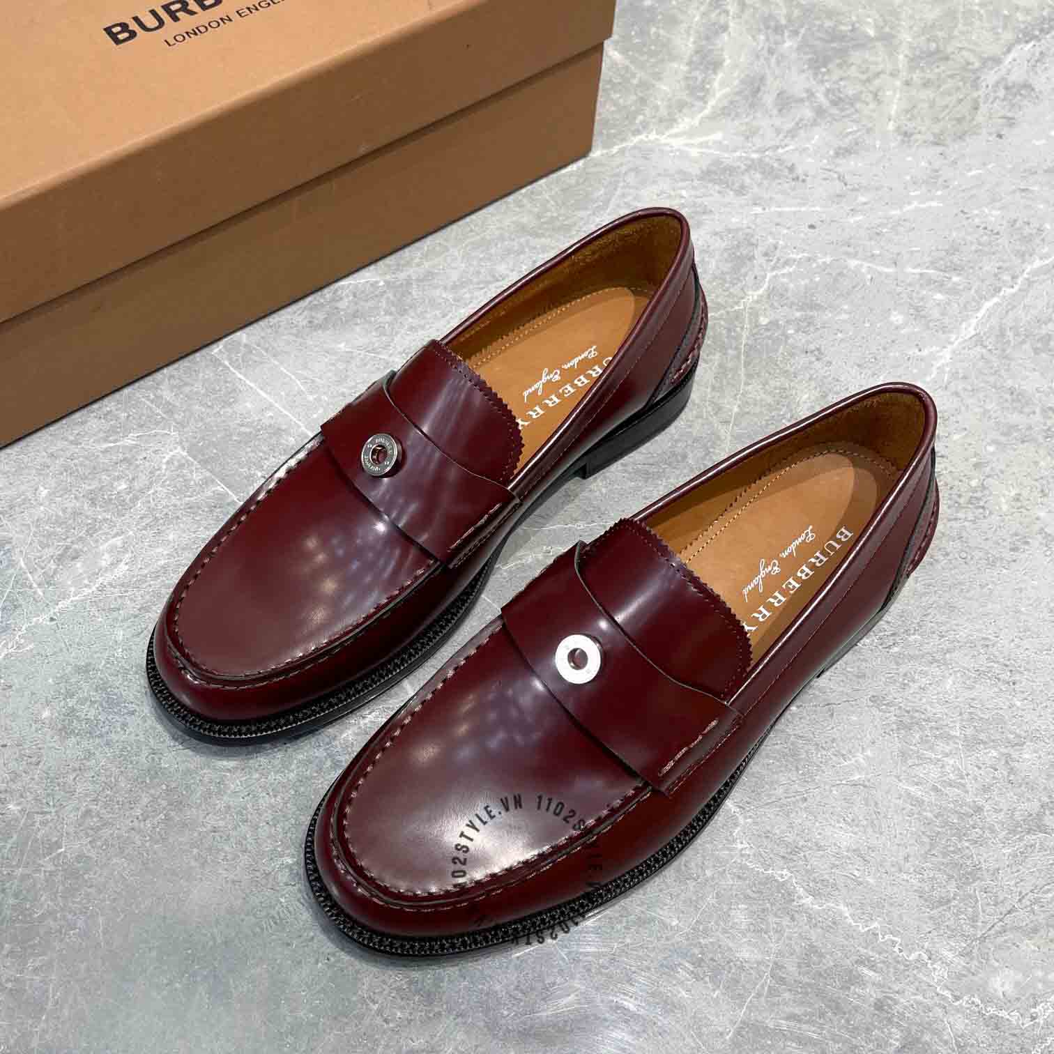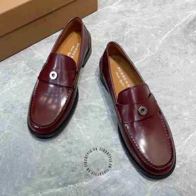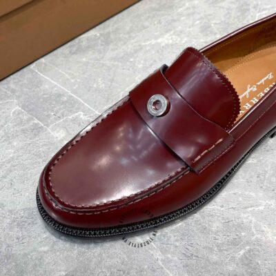 Hình ảnh chi tiết giày lười Burberry nam màu đỏ mận trơn Super Fake loại 1: