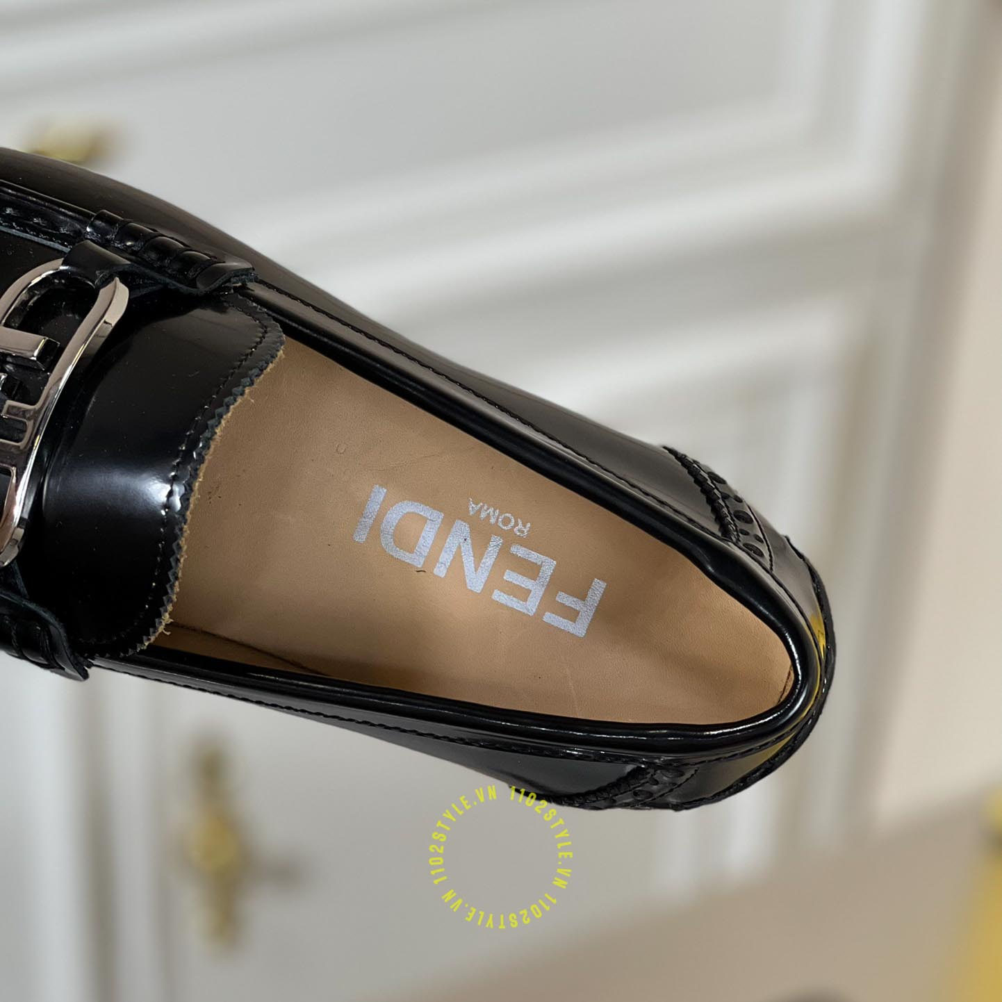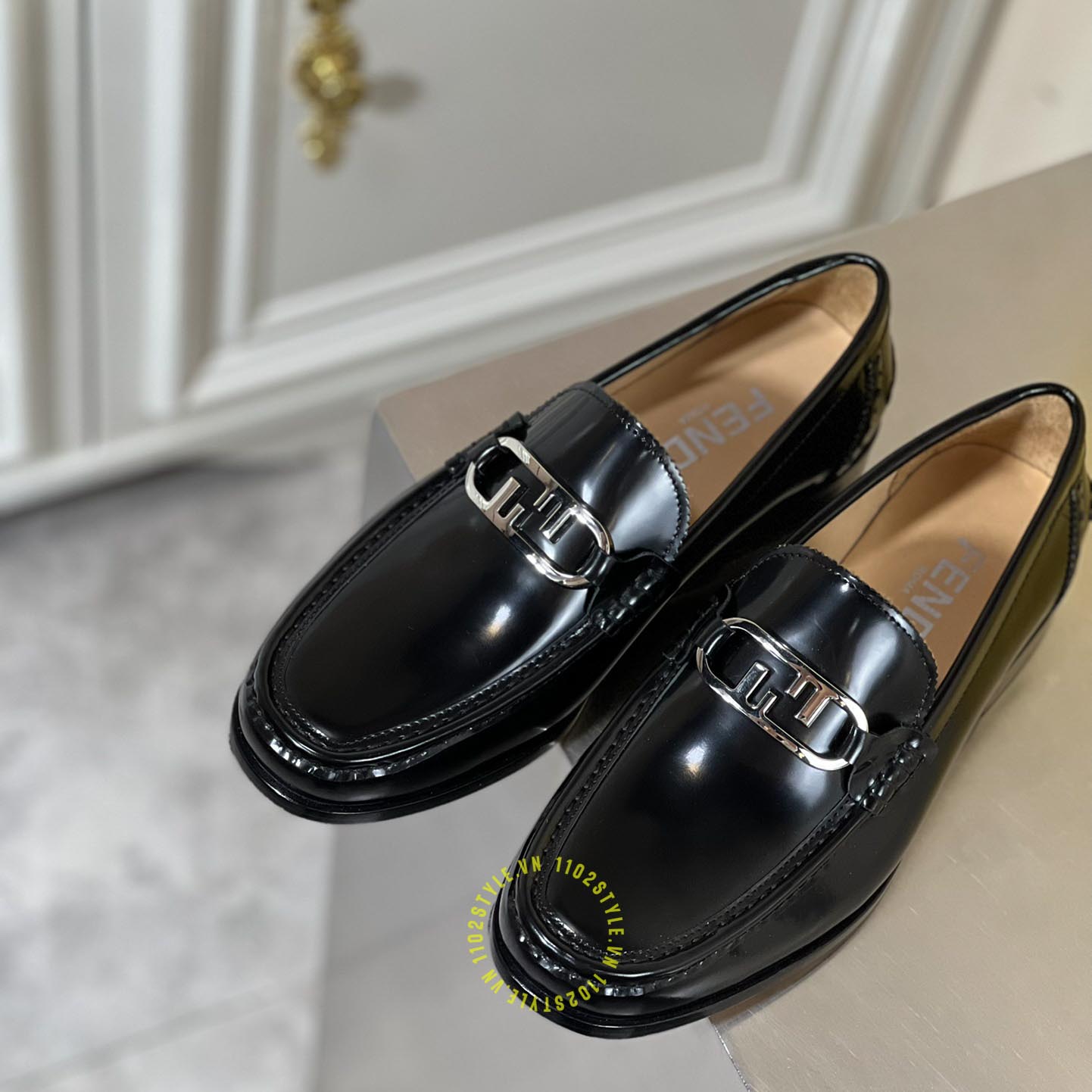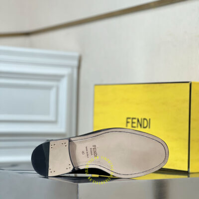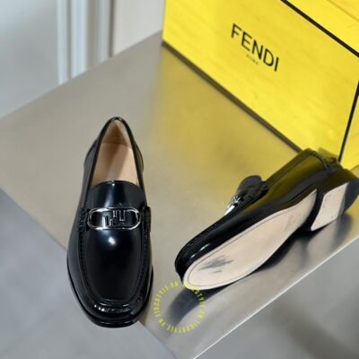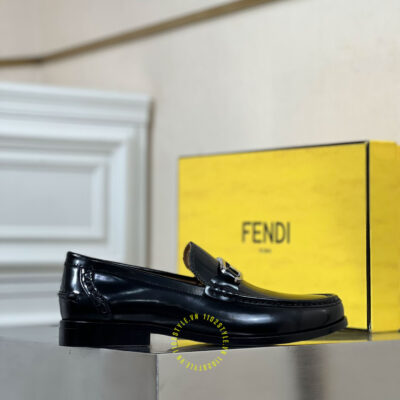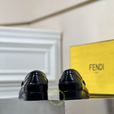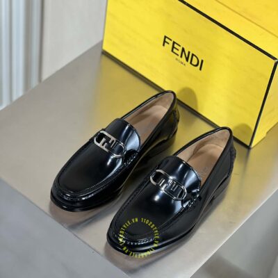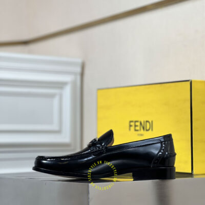 Hình ảnh chi tiết giày lười Fendi nam đen bóng logo kim loại luxury: