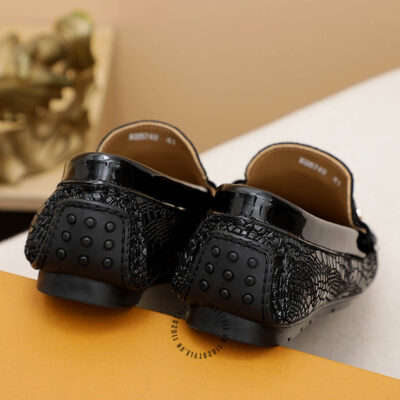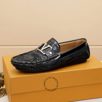 Da cá sấu luôn là biểu tượng của sự giàu có và xa xỉ, không phải người nào cũng có khả năng sở hữu bởi giá sản phẩm mang bộ da cá sấu rất đắt tiền. Giày lười nam LV siêu cấp được chế tác họa tiết vân da cá sấu khiến vẻ bề ngoài cực ấn tượng, tốn biết bao nhiêu công sức để hoàn thành. Thêm nữa là logo màu vàng giúp giày càng nổi bật giữa những ánh nhìn.