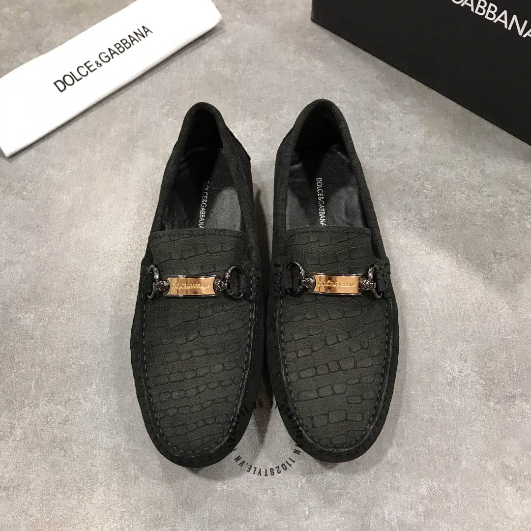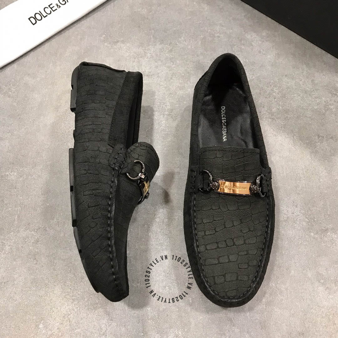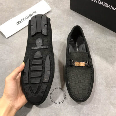 Hình ảnh mô tả chi tiết Giày Moca Dolce & Gabbana nam màu đen logo vàng :