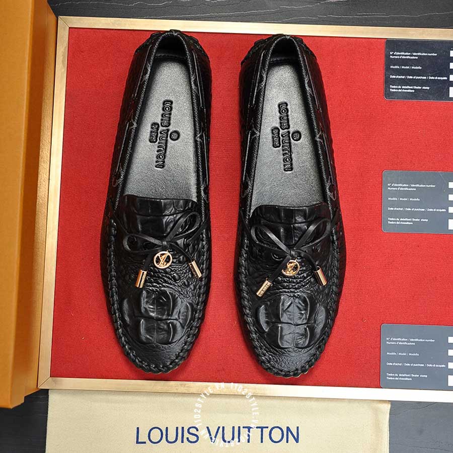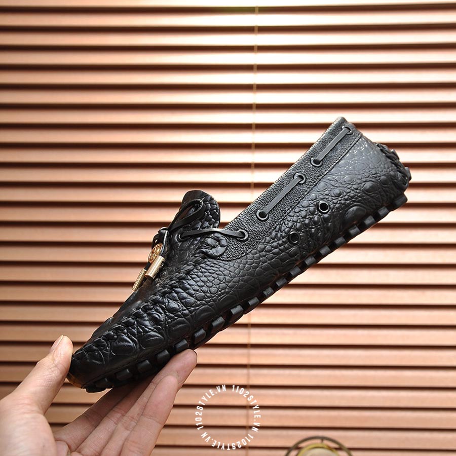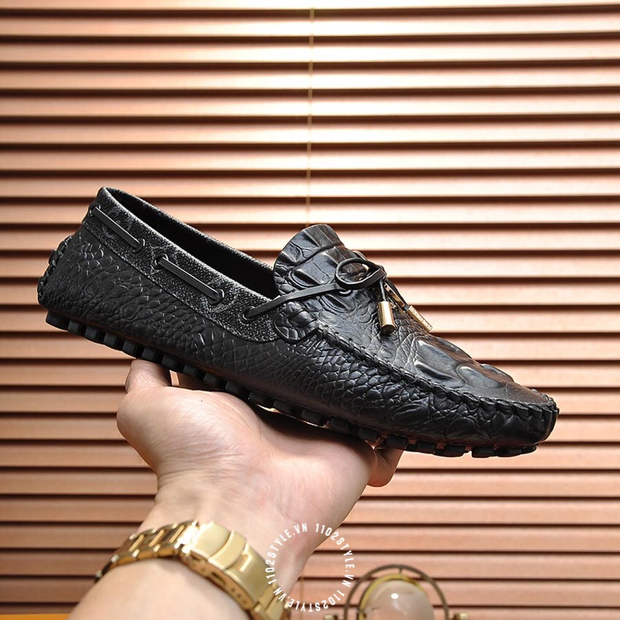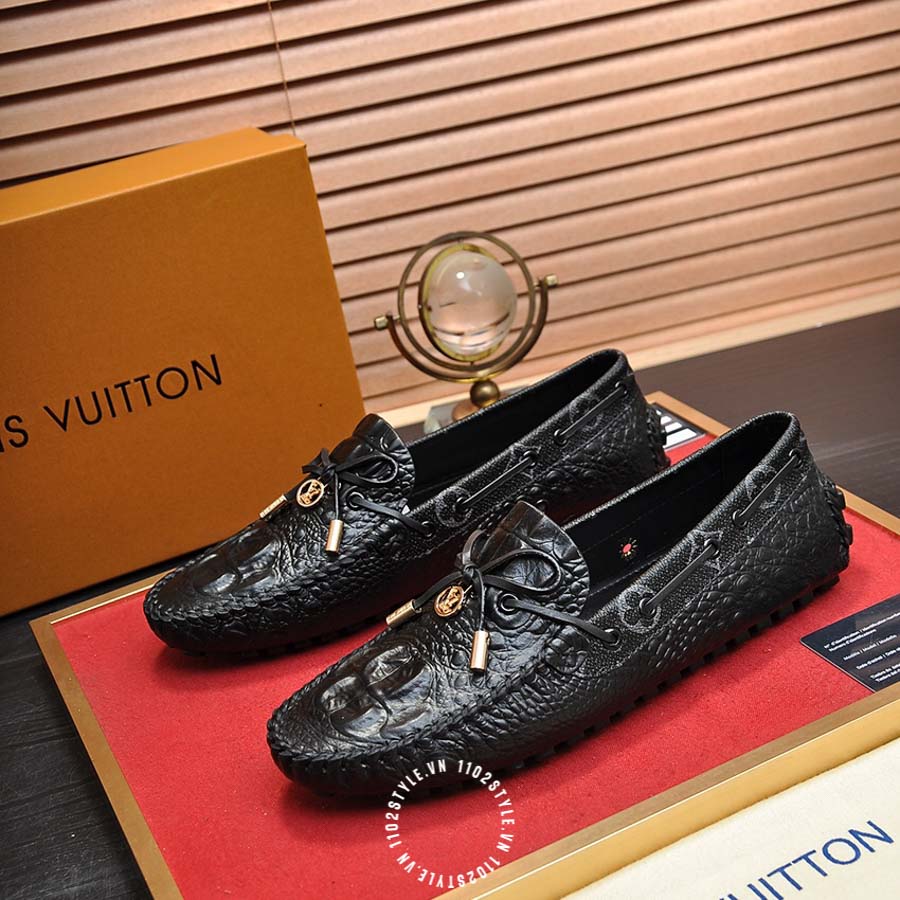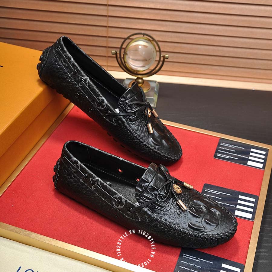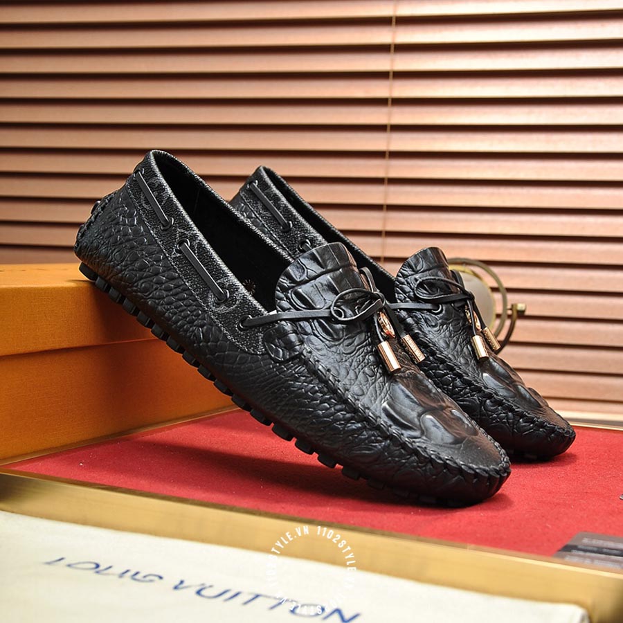 Giày moca LV da sần màu đen cao cấp YBYB05
