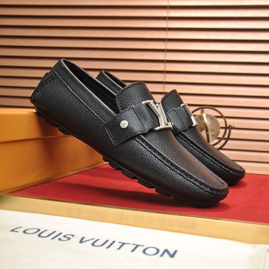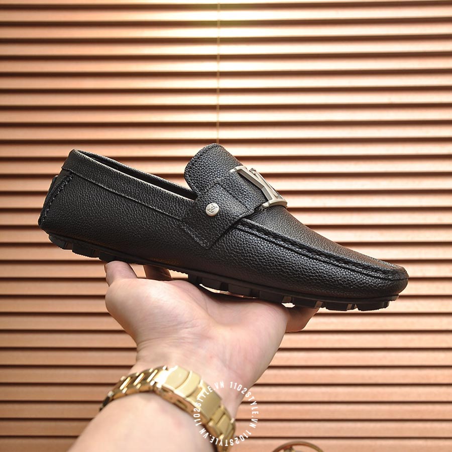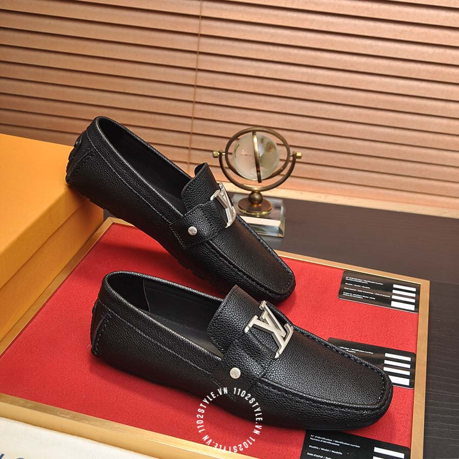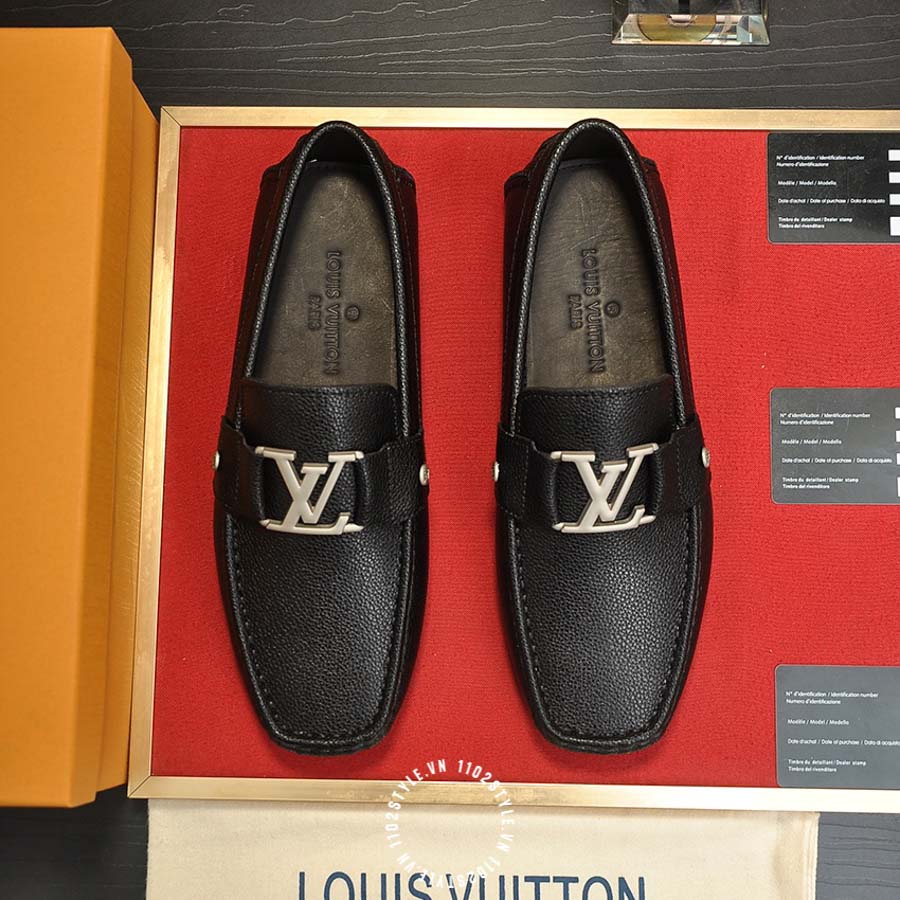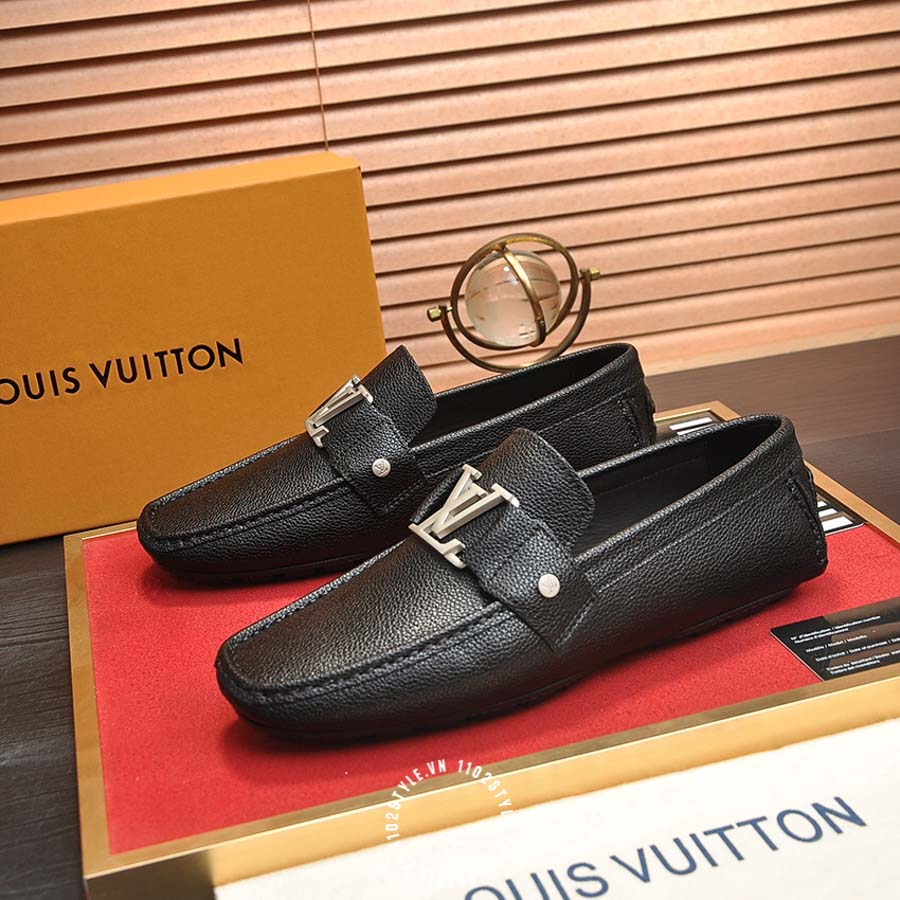 Giày moca LV da sần màu đen hàng hiệu YBYB01