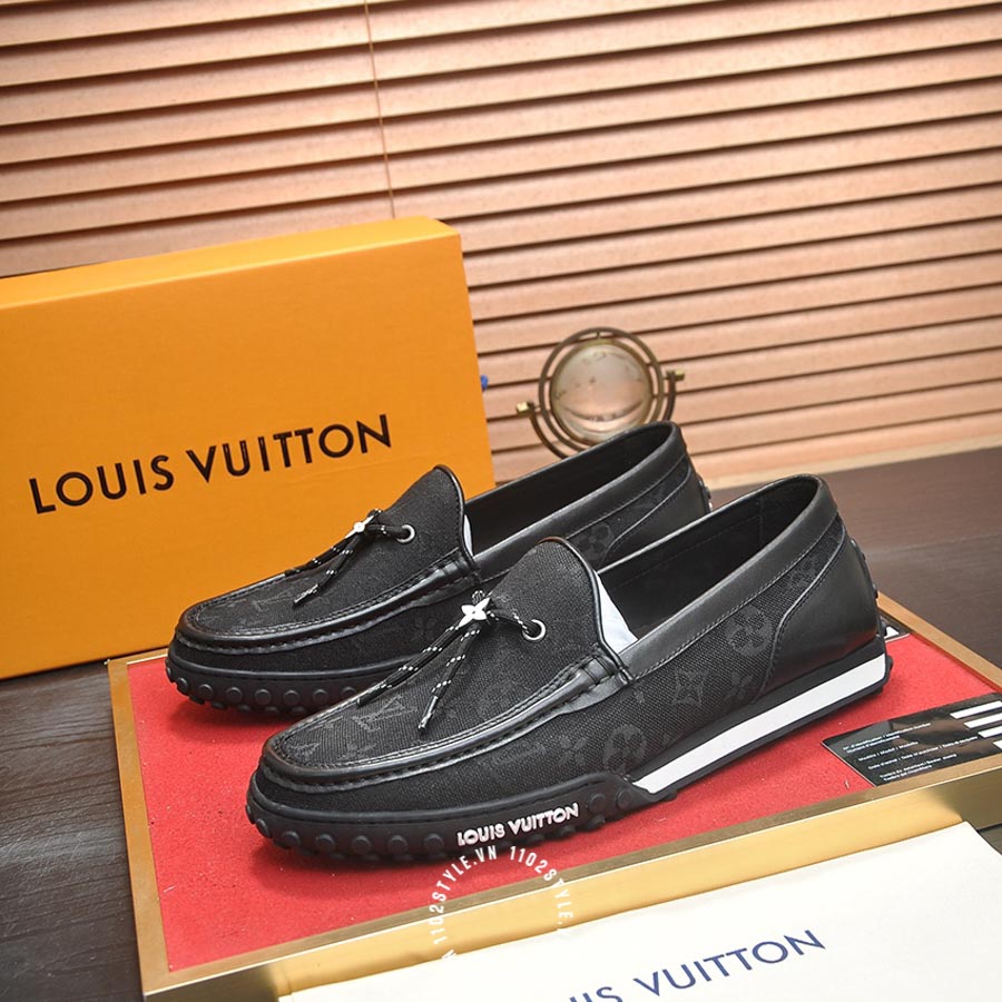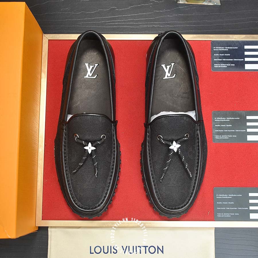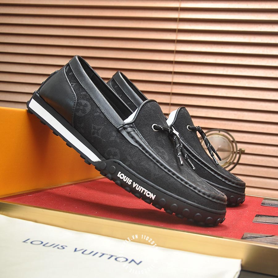 Giày moca LV da sần màu đen sang trọng YCYC04
