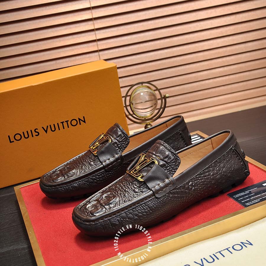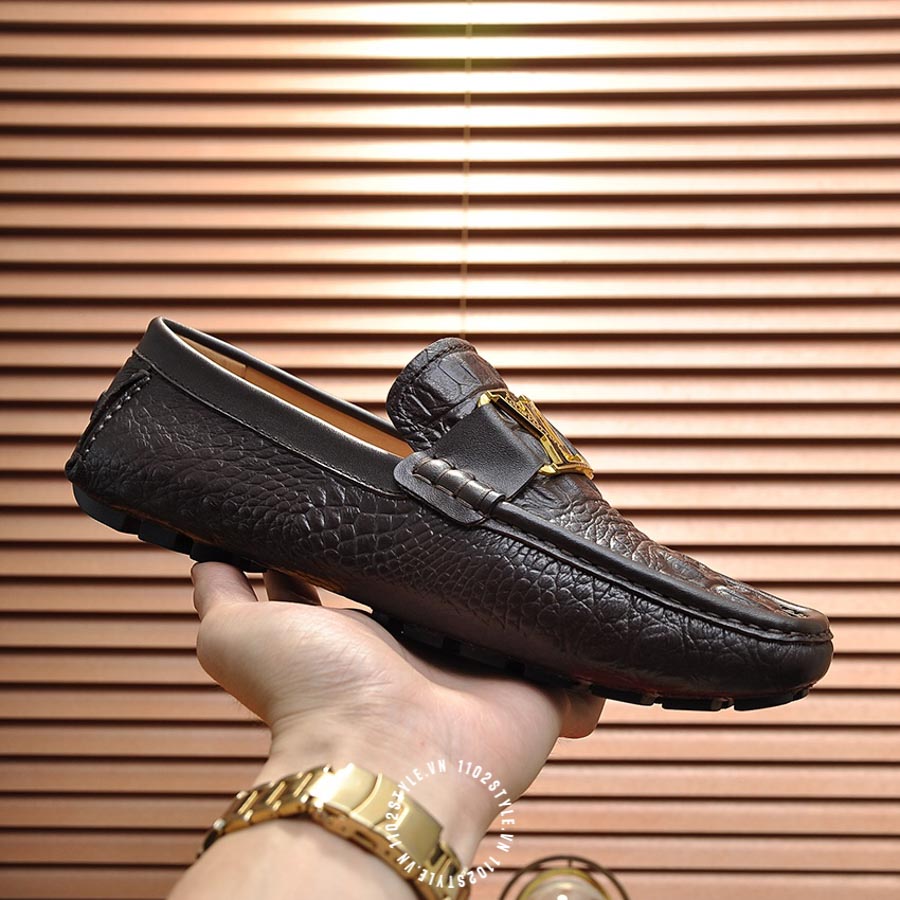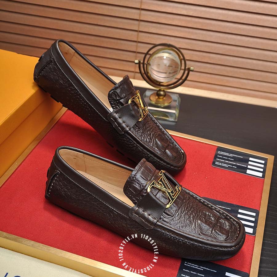 Giày moca LV da sần màu nâu cao cấp YBYB02