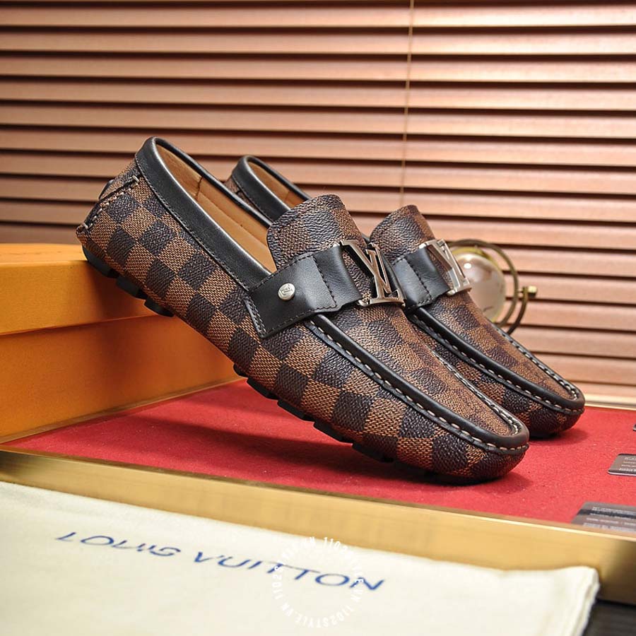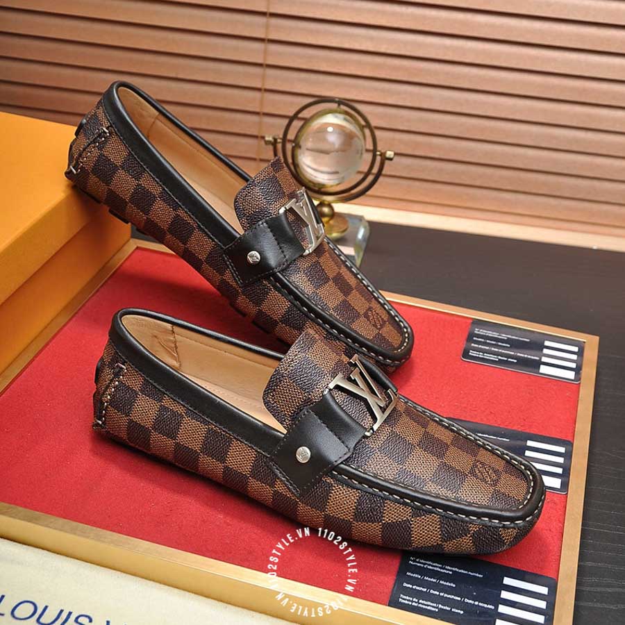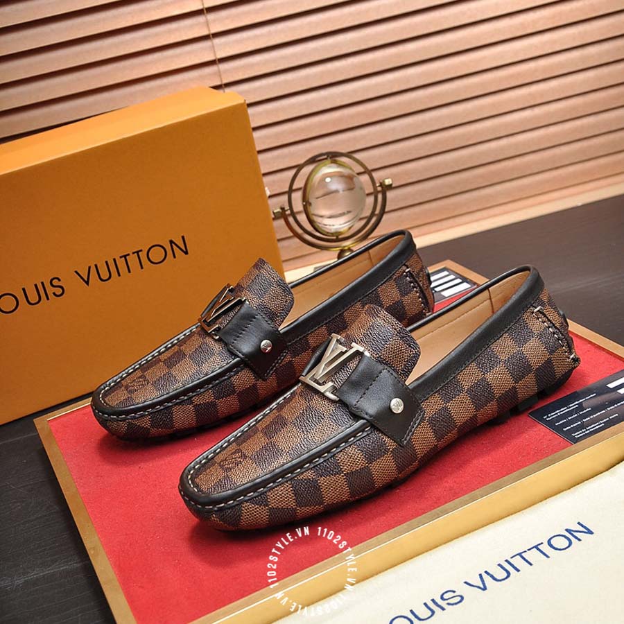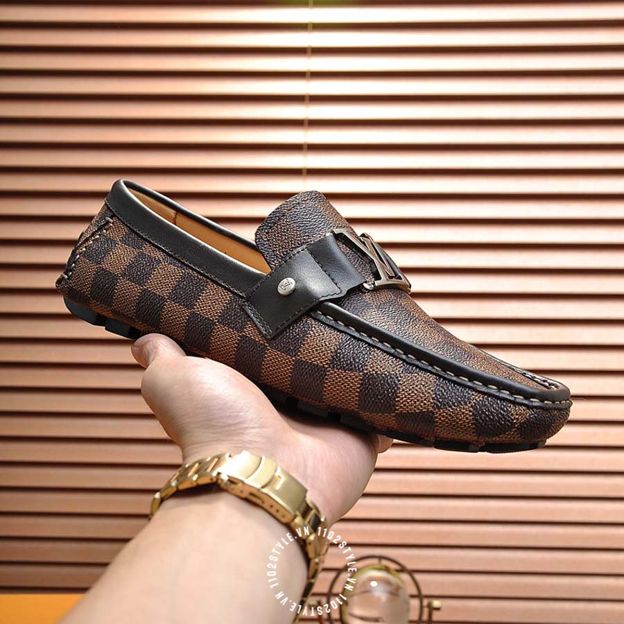 Giày moca LV da sần màu nâu cao cấp YBYB08