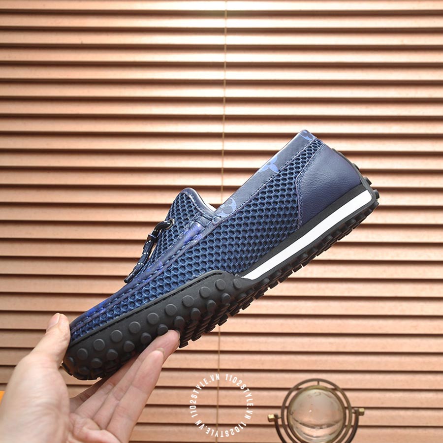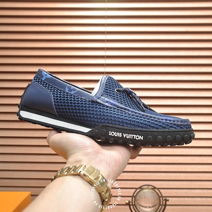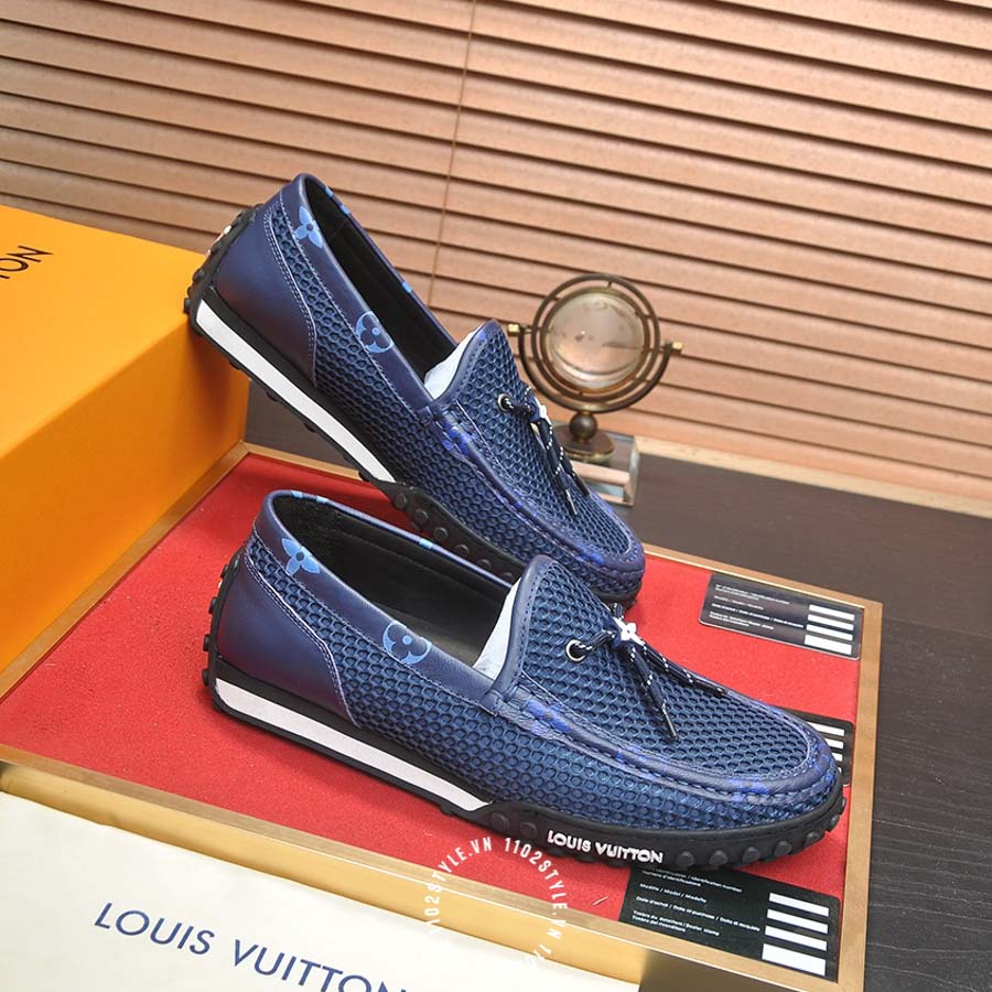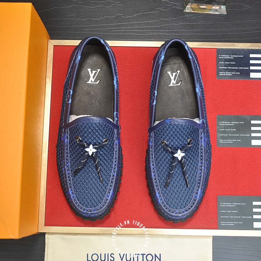 Giày moca LV da sần màu xanh dương hàng hiệu YCYC01