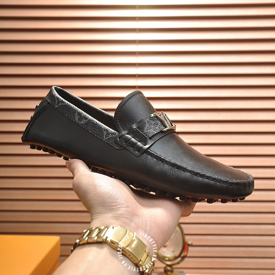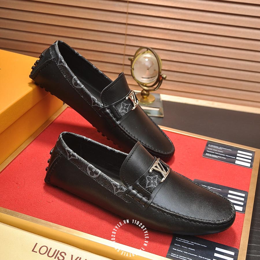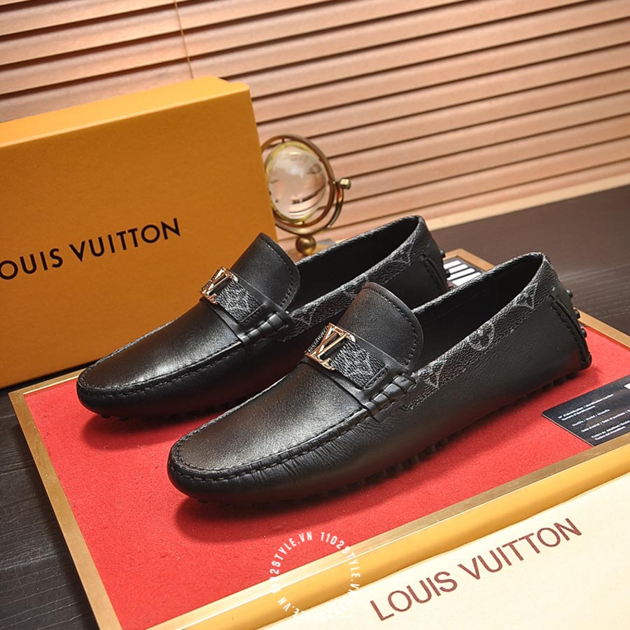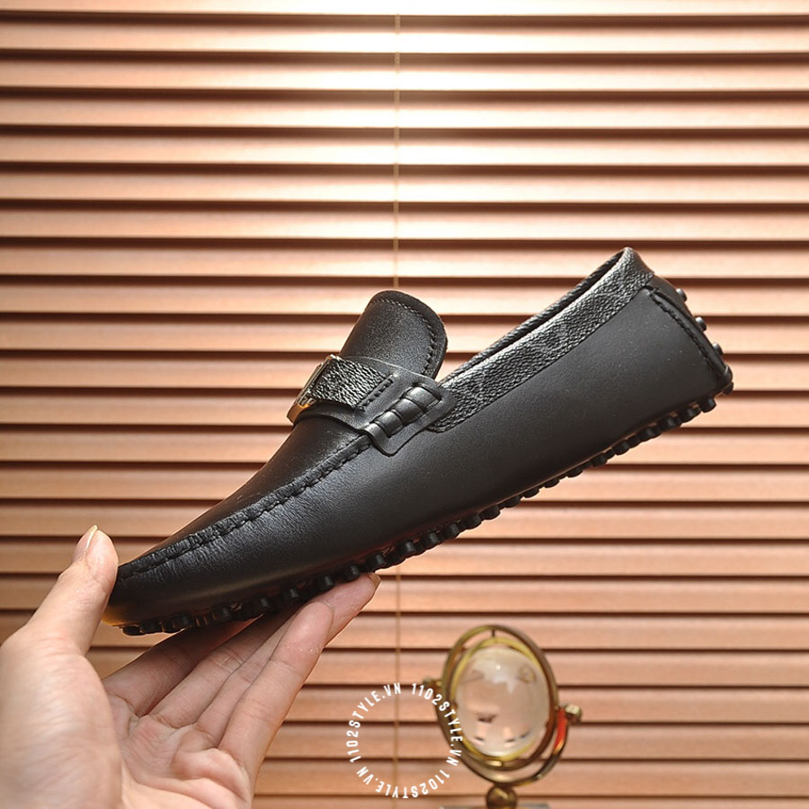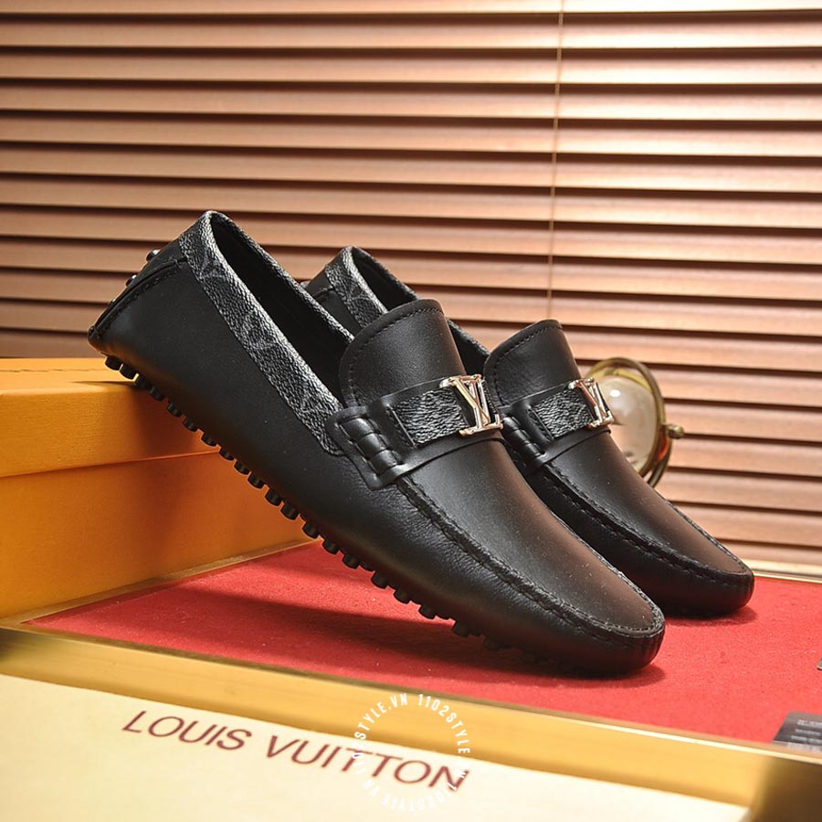 Giày moca LV da trơn màu đen hàng hiệu YAYA02