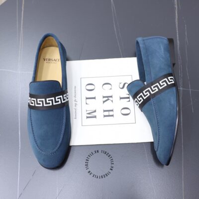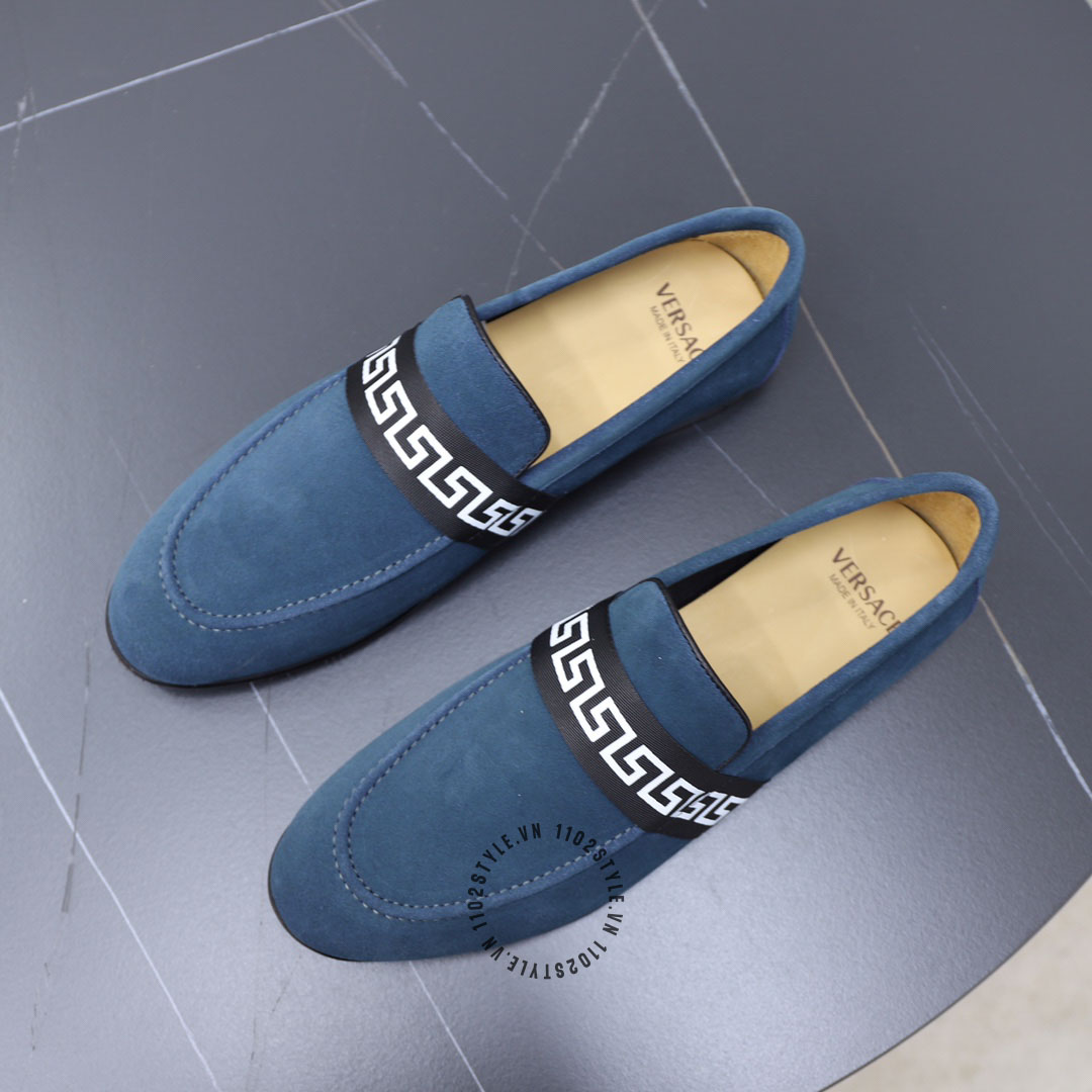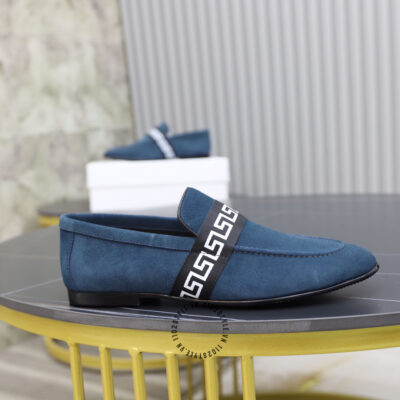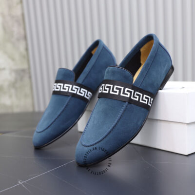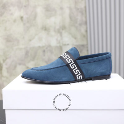 Hình ảnh chi tiết giày Loafer Versace nam màu xanh da lộn phiên bản luxury: