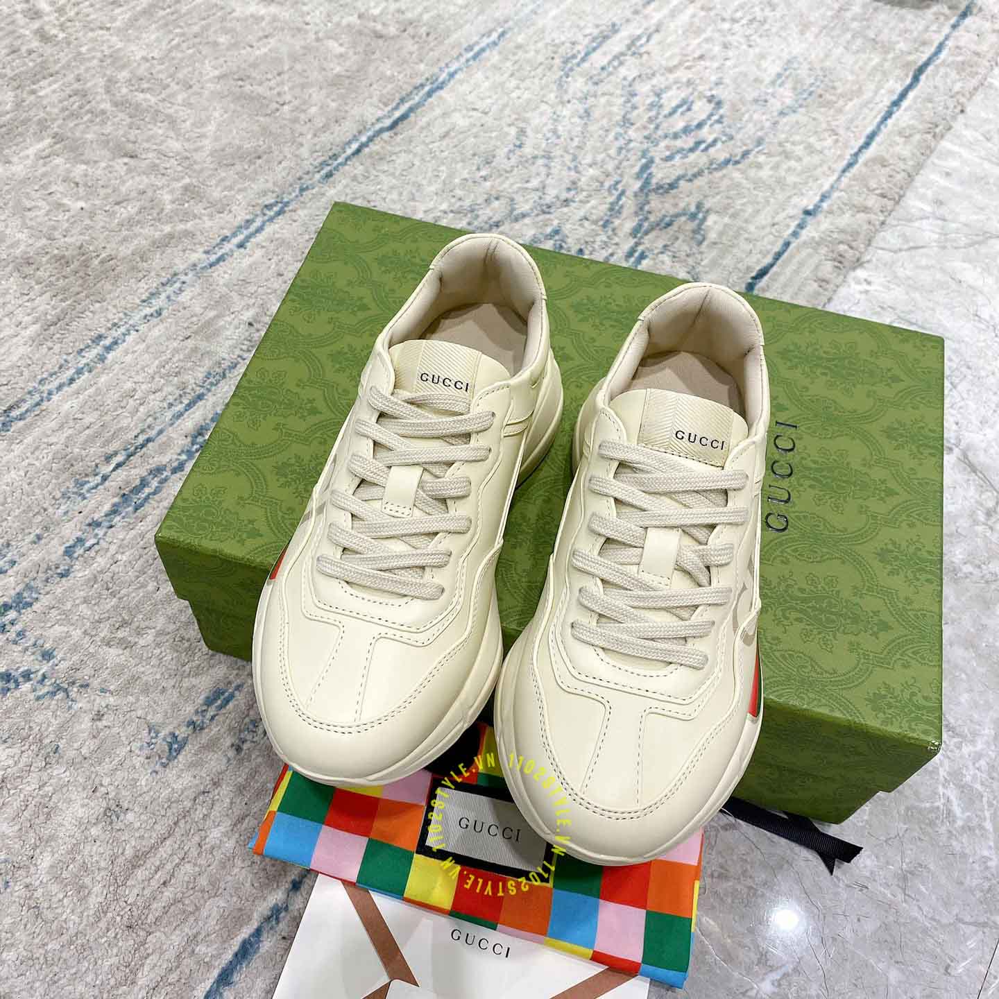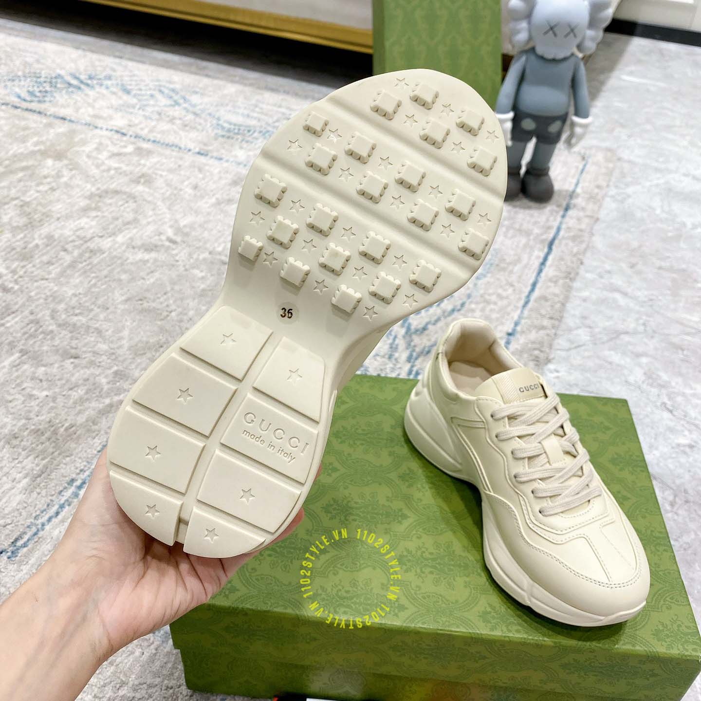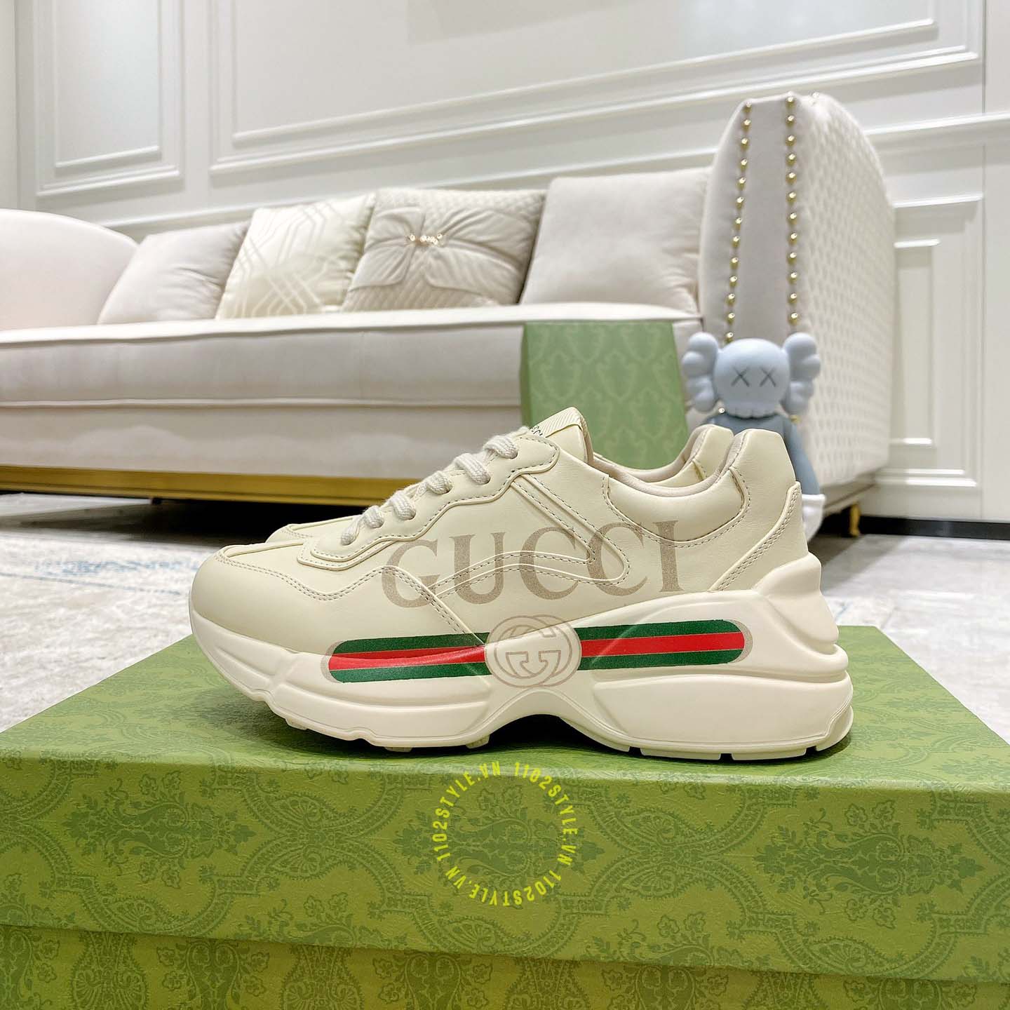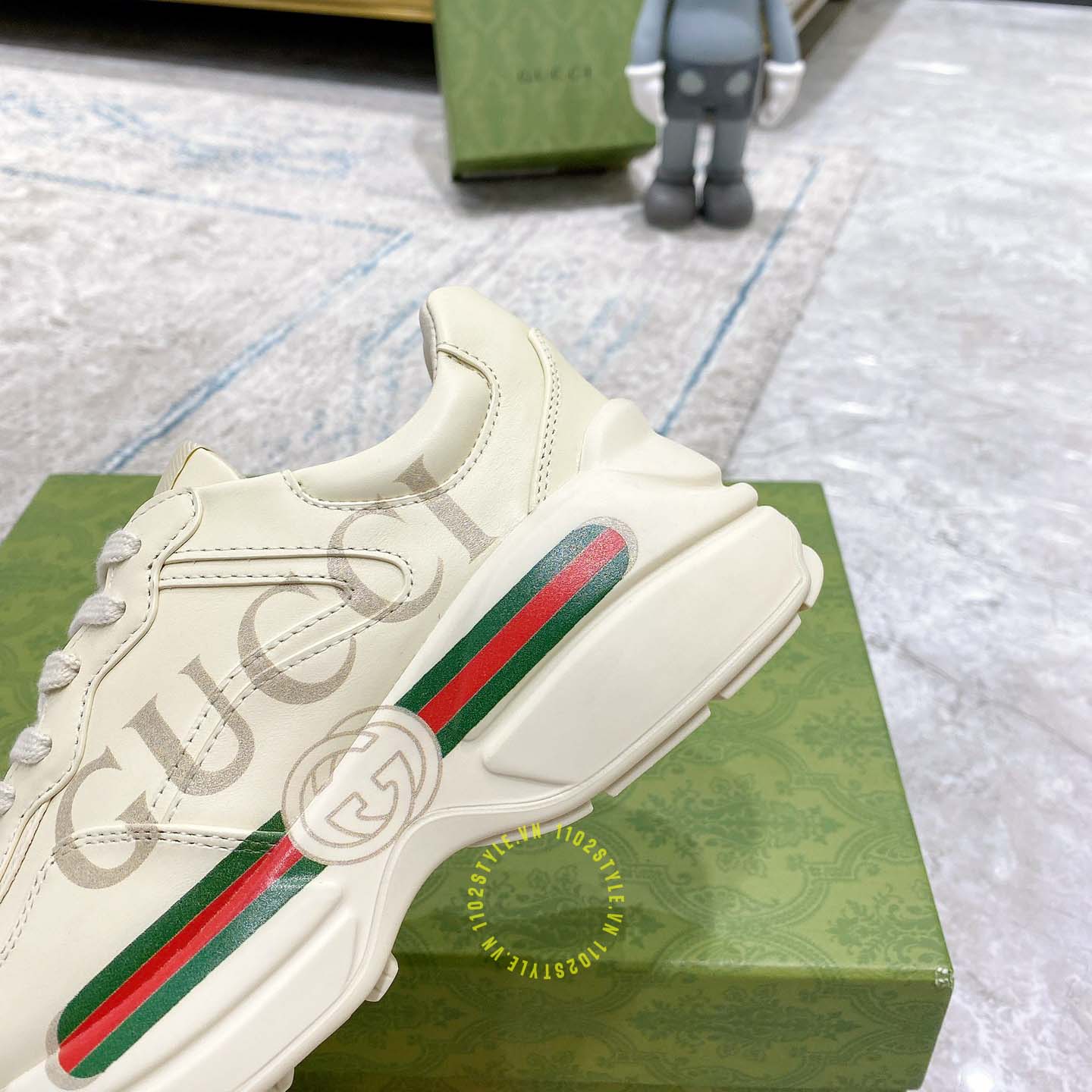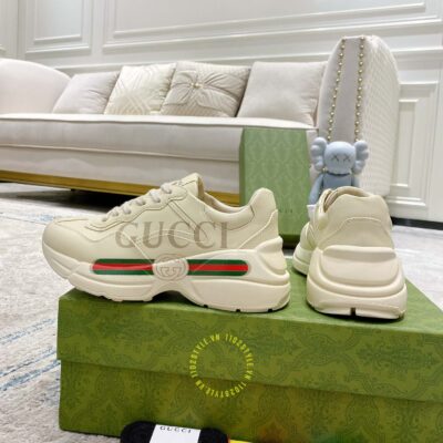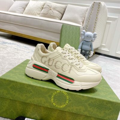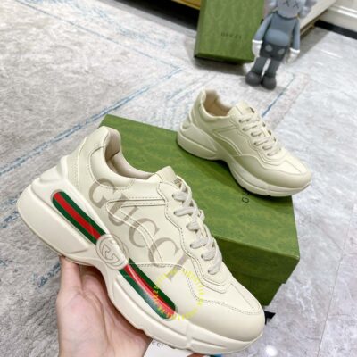 Ảnh chi tiết giày nam Gucci Sneaker replica màu be phối họa tiết: