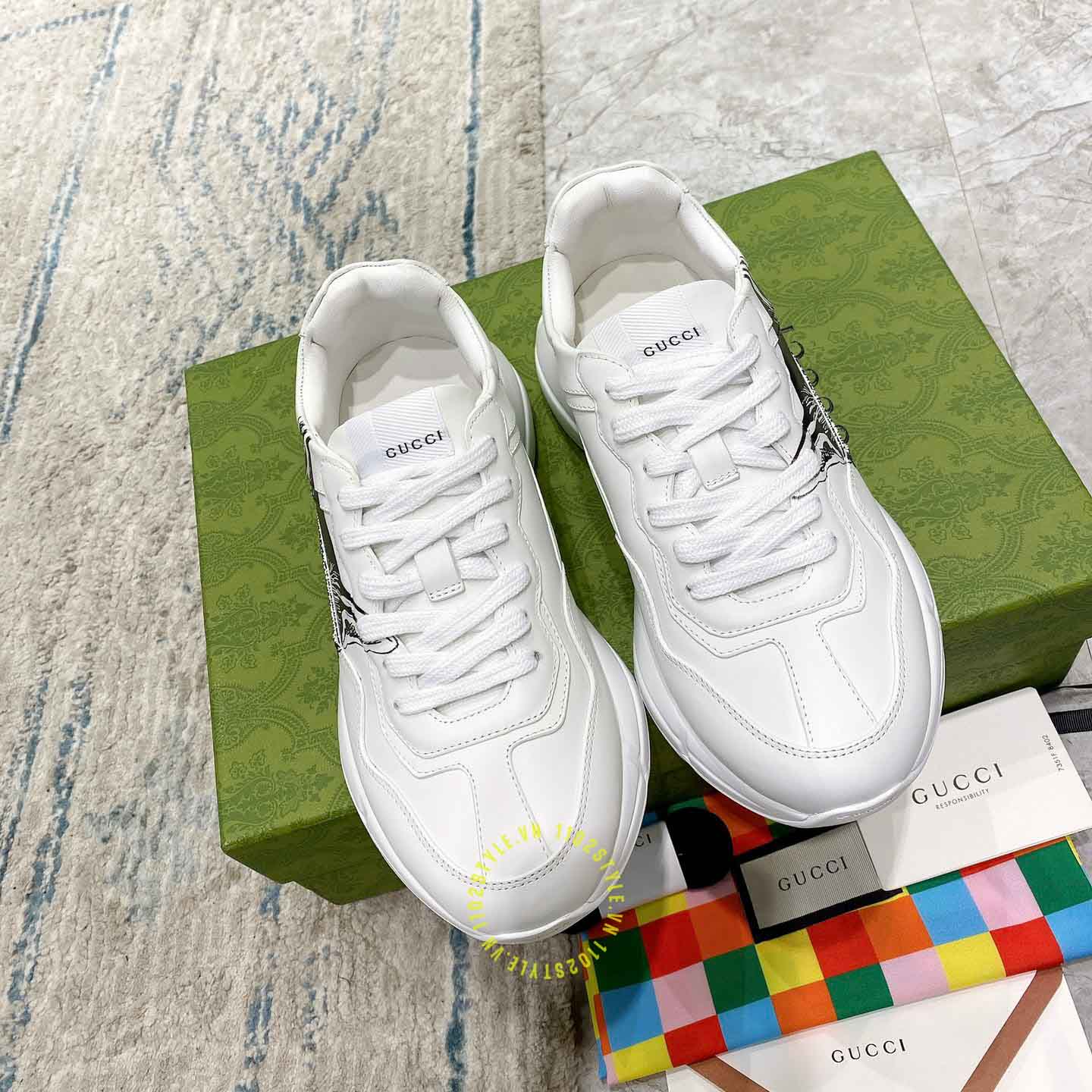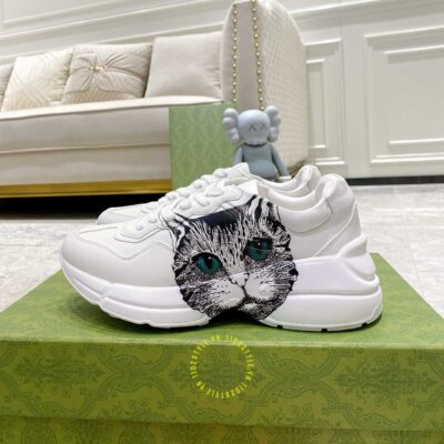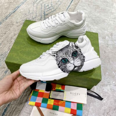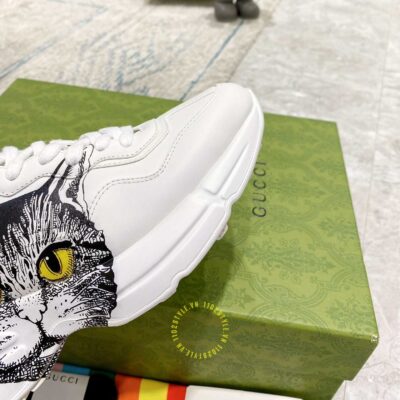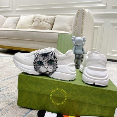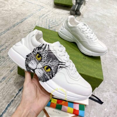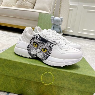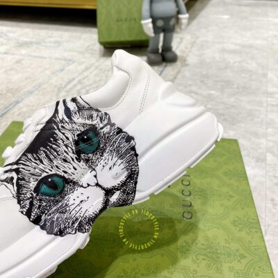 Hình ảnh giày nam hàng hiệu Gucci Sneaker màu trắng hoạ tiết Mystic Cat: