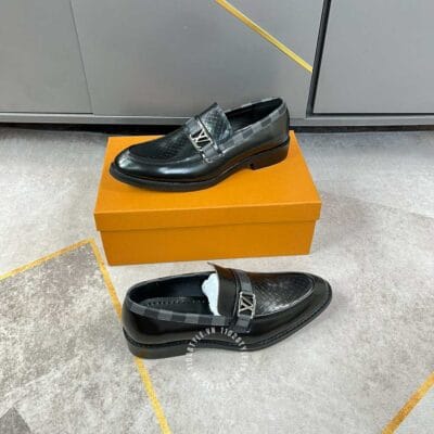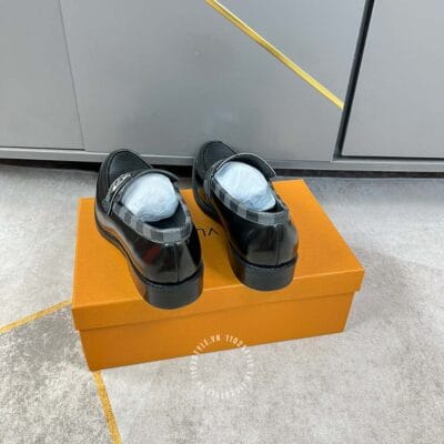 2. Đôi nét về sản phẩm giày lười hàng hiệu Louis Vuitton màu đen logo kim loại siêu cấp