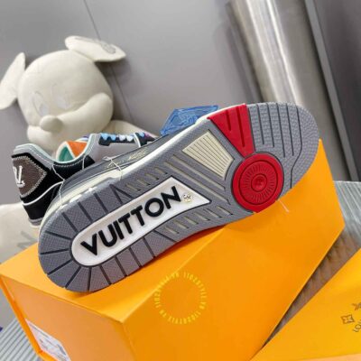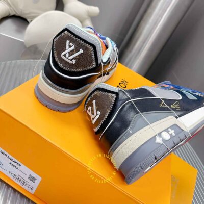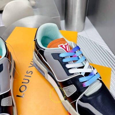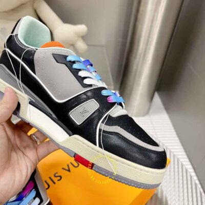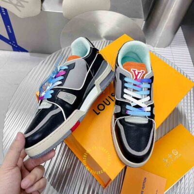 Hình ảnh giày nam nữ LV da trơn màu đen phối họa tiết ghi hàng hiệu: