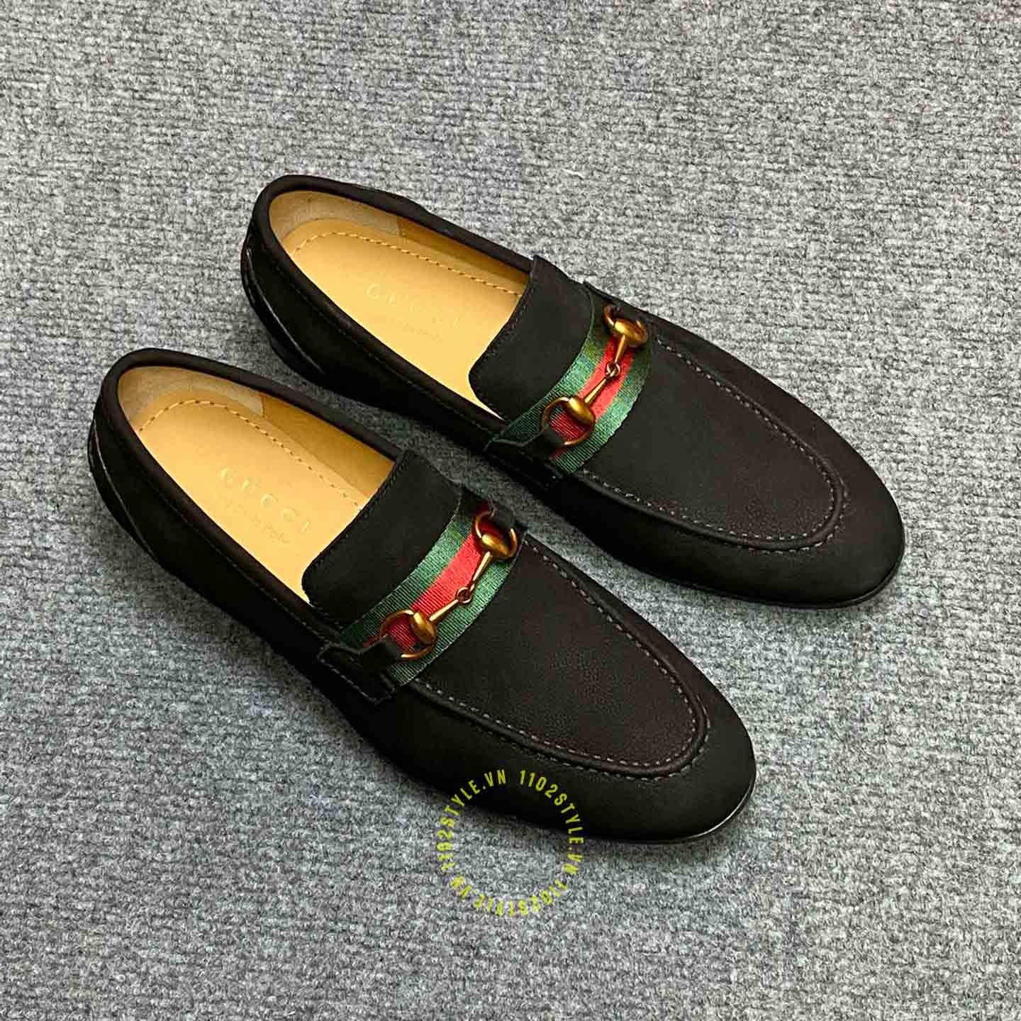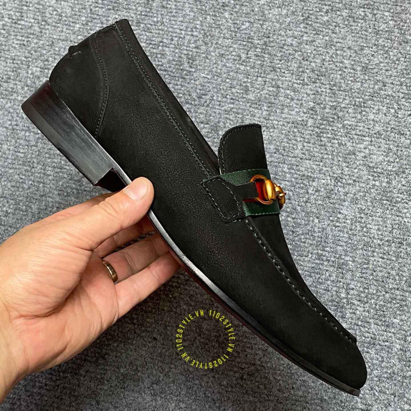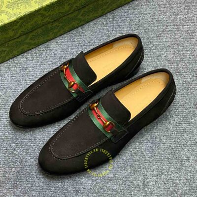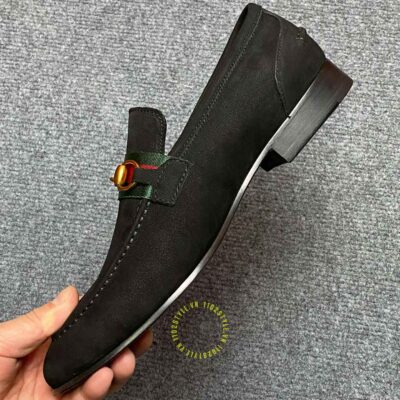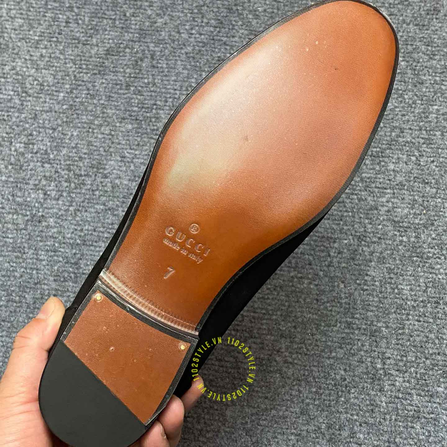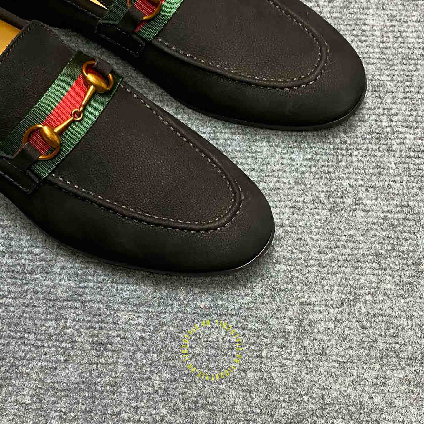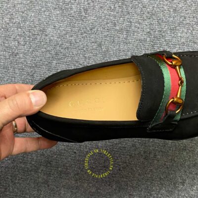 Hình ảnh chi tiết giày nam super fake Gucci Loafer màu đen họa tiết Vintage Web: