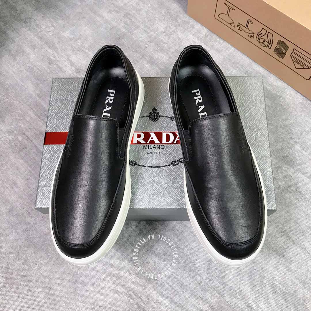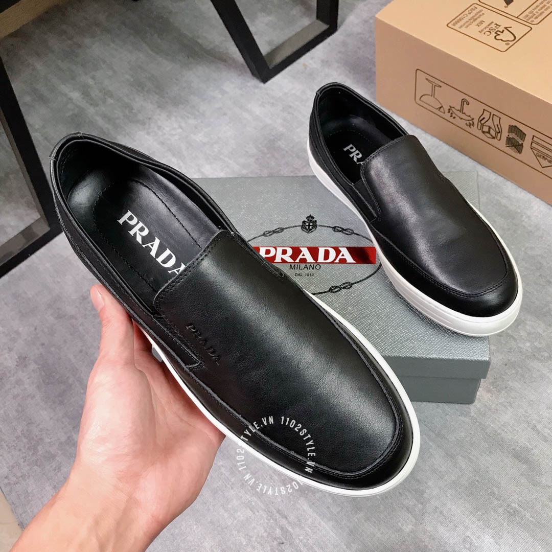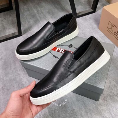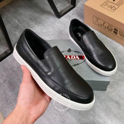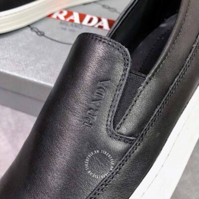 Hình ảnh chi tiết giày Slip on Prada màu đen thời trang hàng hiệu da xịn cao cấp: