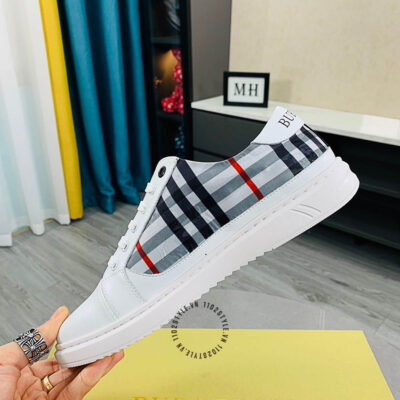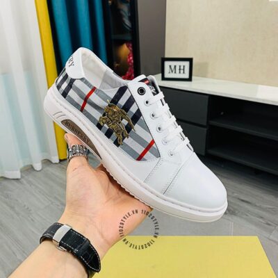 Hình ảnh chi tiết giày Sneaker Burberry nam màu trắng Fake 1:1 họa tiết nổi bật: