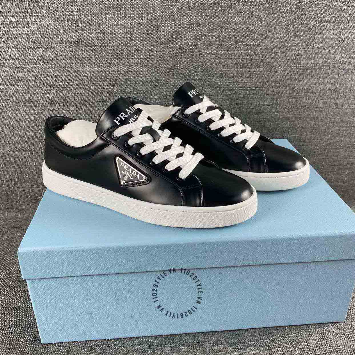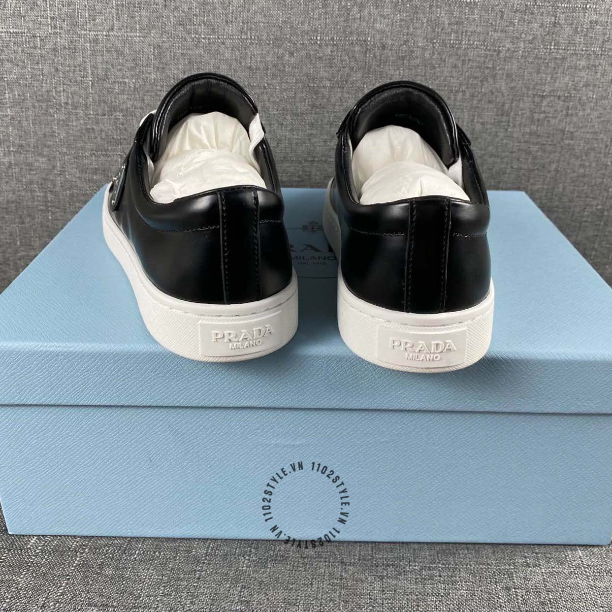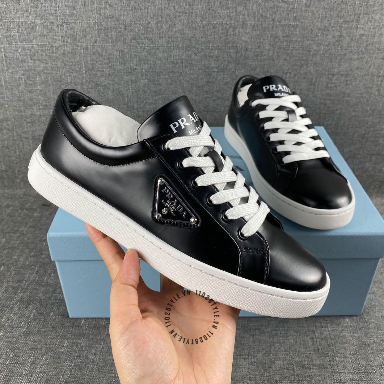 Ảnh chi tiết giày Sneaker Prada hàng hiệu màu đen da thật phiên bản xách tay: