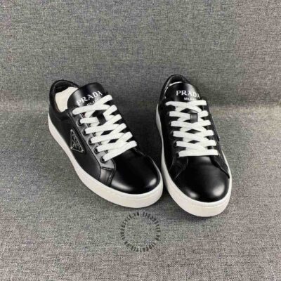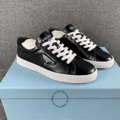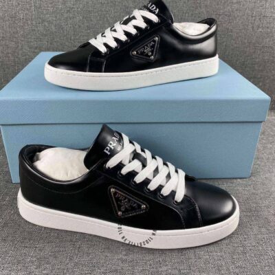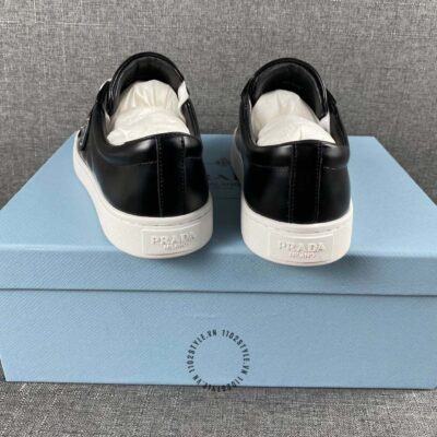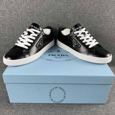 Ảnh chi tiết giày Sneaker Prada hàng hiệu màu đen da thật phiên bản xách tay: