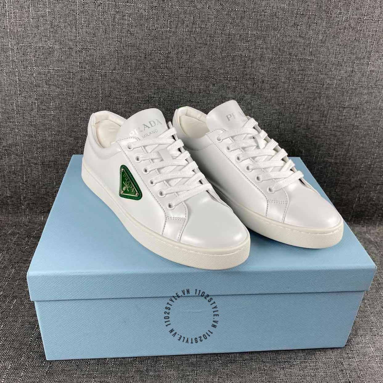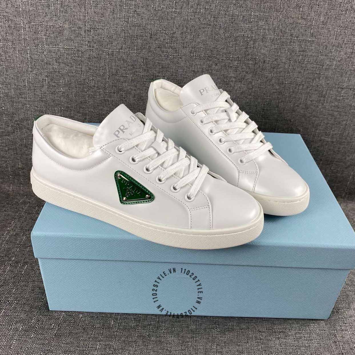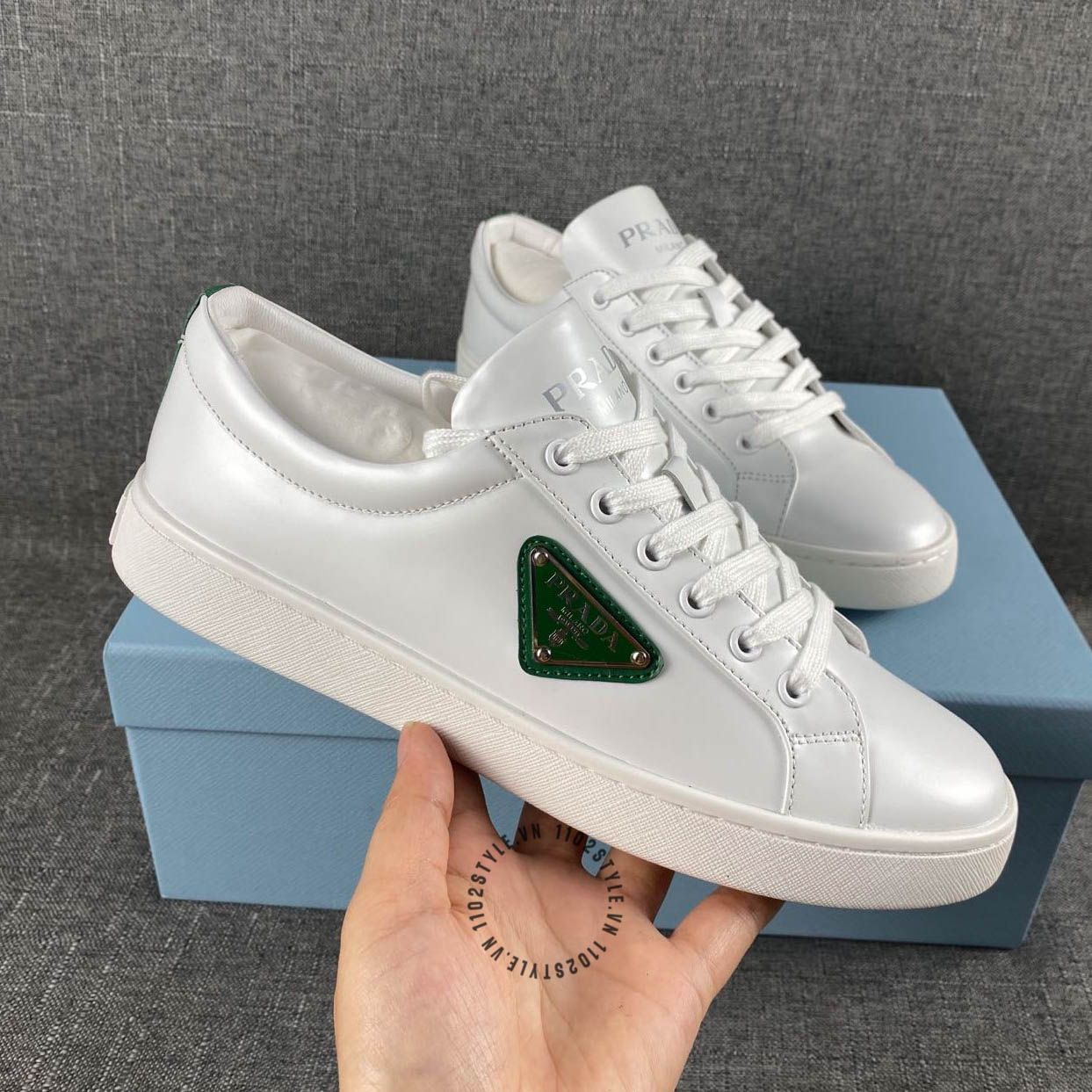 Hình ảnh chi tiết giày Sneaker Prada hàng hiệu màu trắng logo xanh nổi bật :