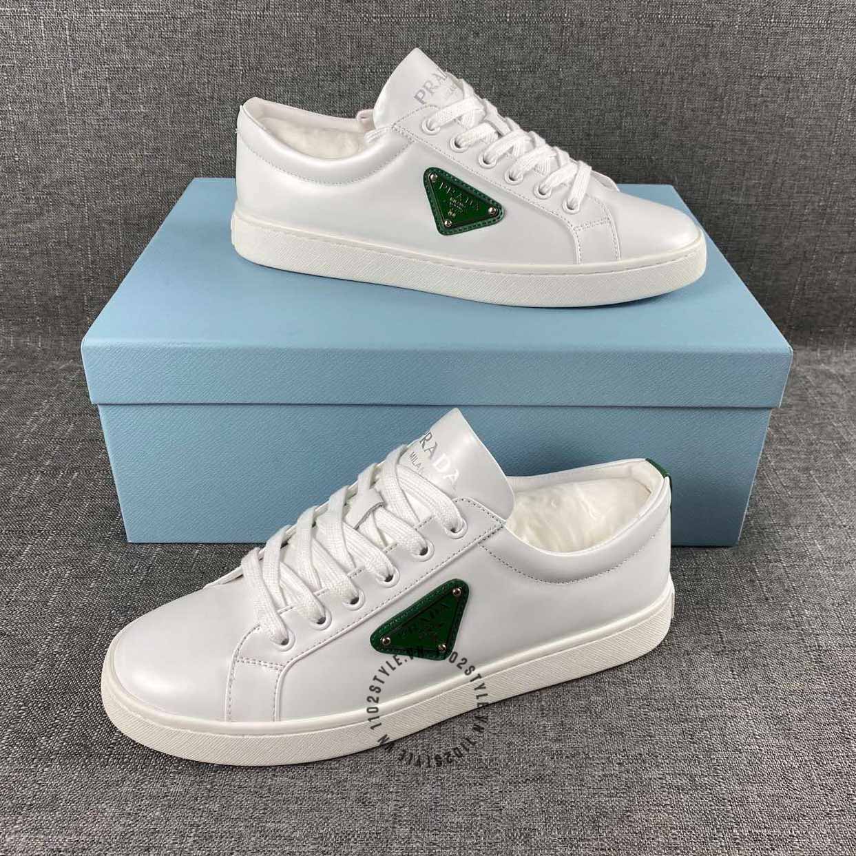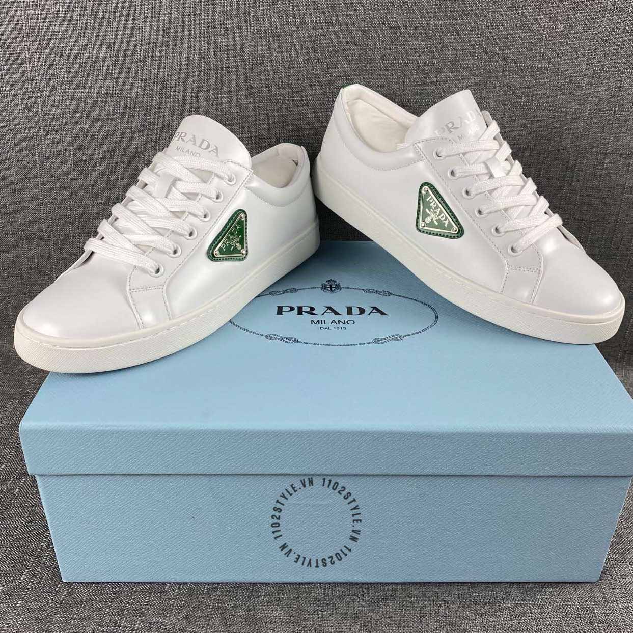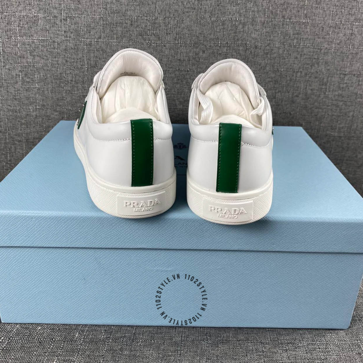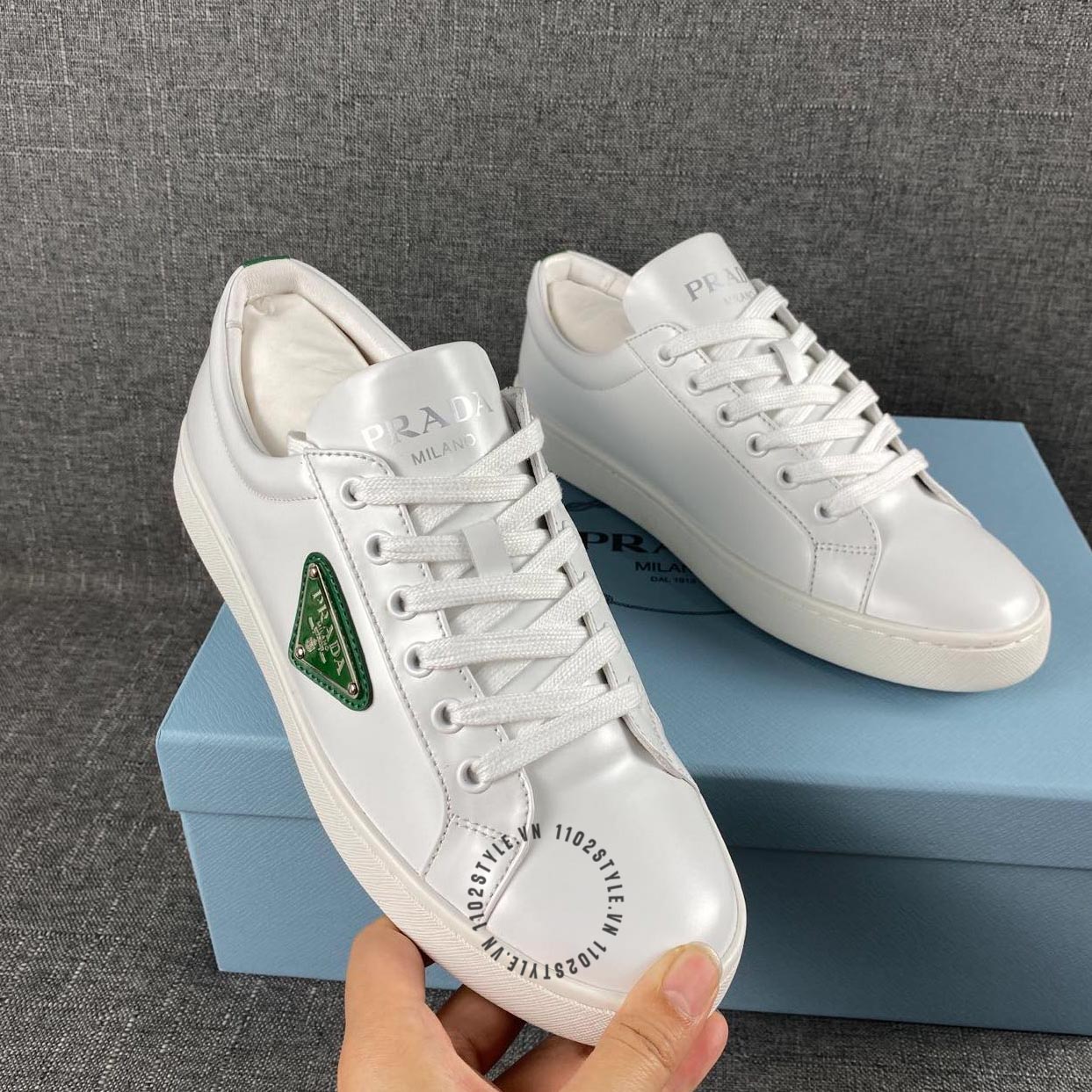 Hình ảnh chi tiết giày Sneaker Prada hàng hiệu màu trắng logo xanh nổi bật :