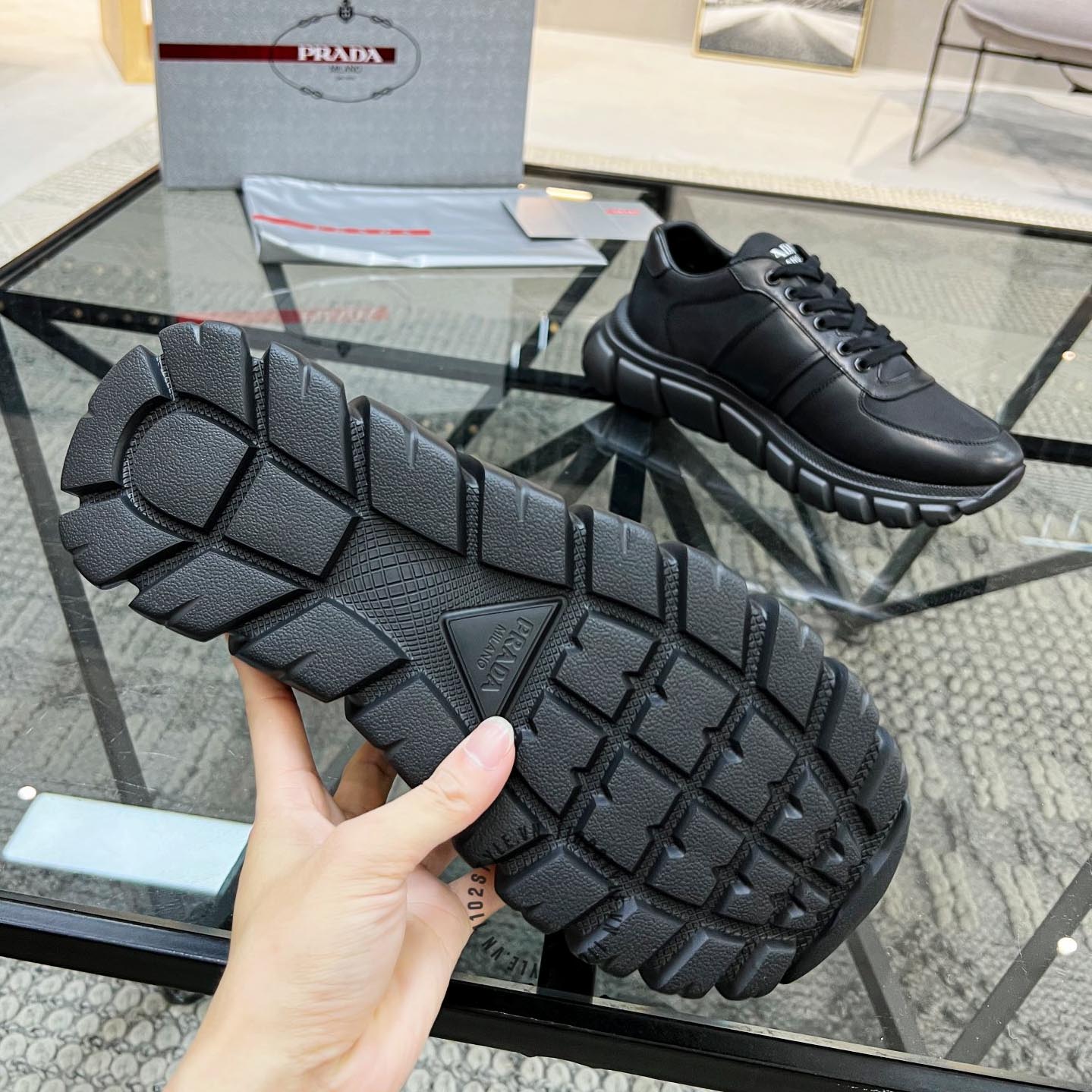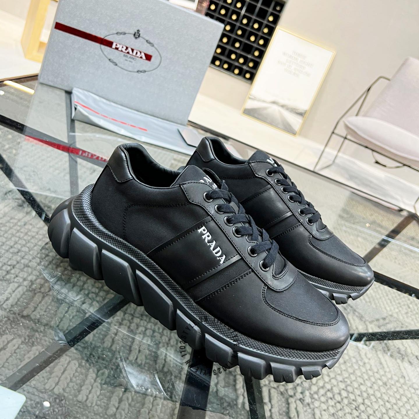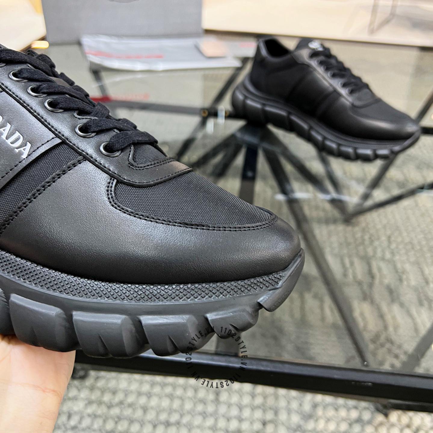 Ảnh chi tiết giày Sneaker Prada nam hàng hiệu màu đen da xịn phiên bản cao cấp: