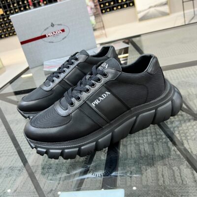 Ảnh chi tiết giày Sneaker Prada nam hàng hiệu màu đen da xịn phiên bản cao cấp: