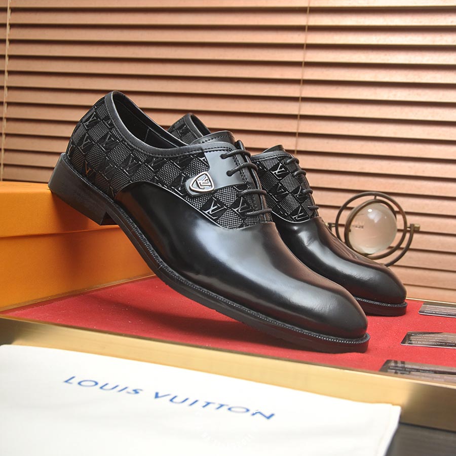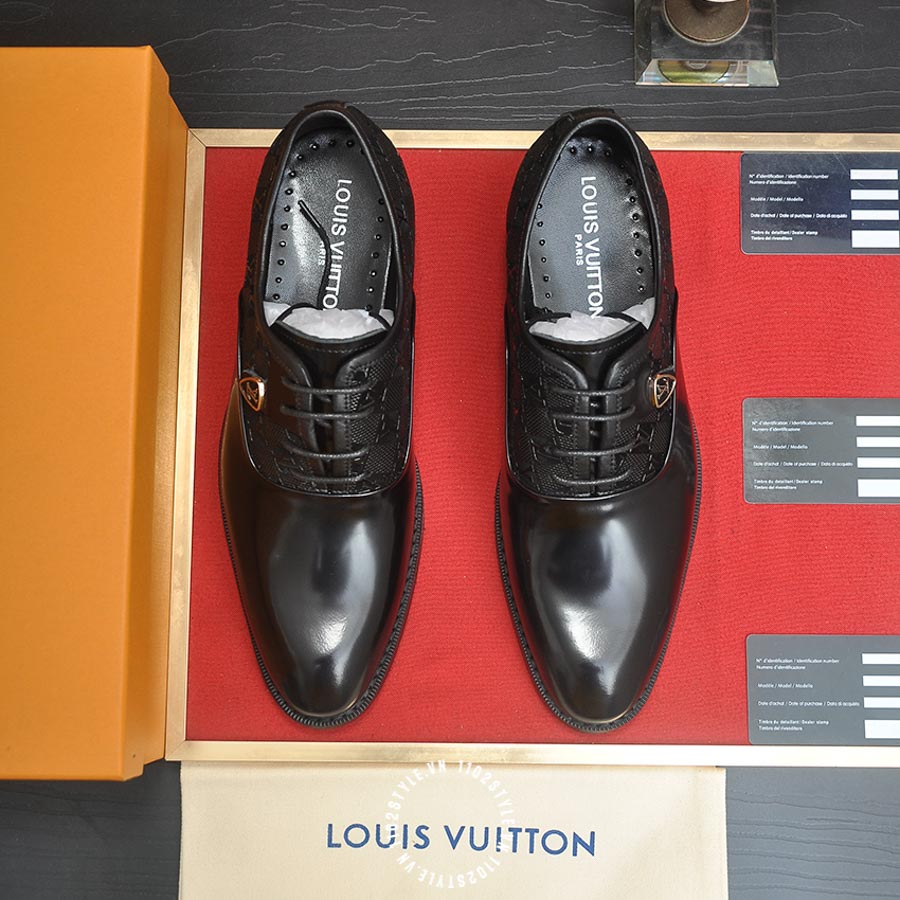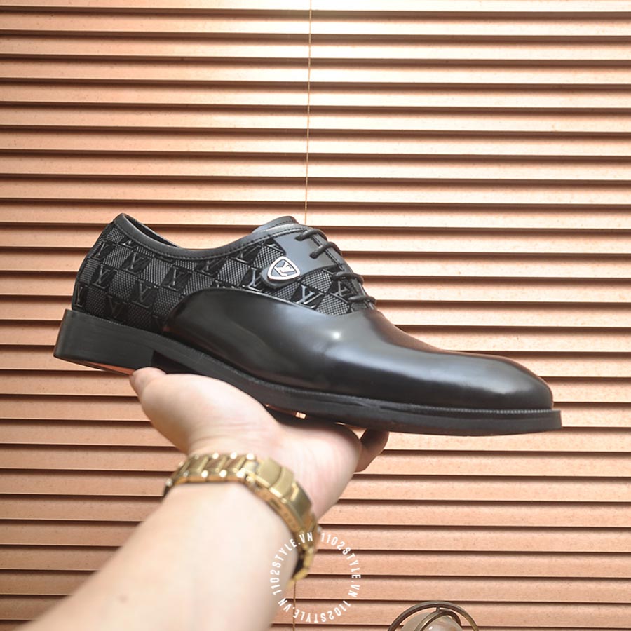 Giày tây LV da trơn màu đen hàng hiệu HUHU06