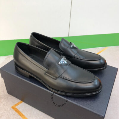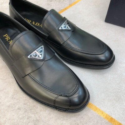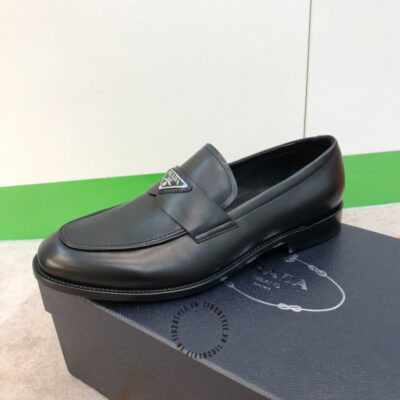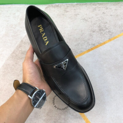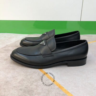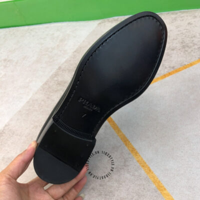 Ảnh chi tiết giày tây Prada nam màu đen da xịn phiên bản cao cấp hàng hiệu: