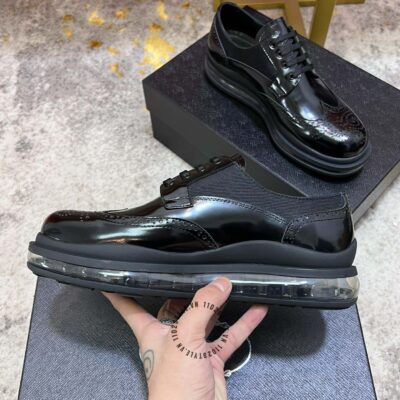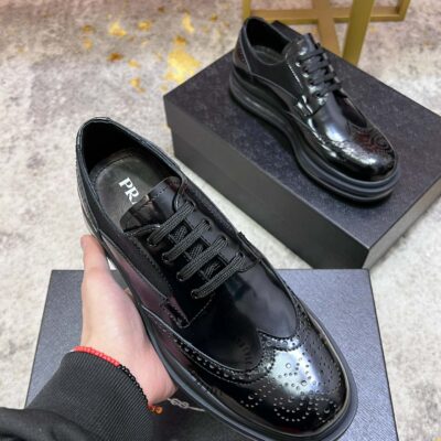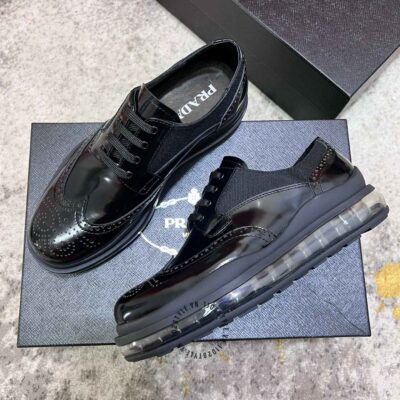 Ảnh chi tiết giày tây Prada nam màu đen phiên bản replica 1:1 chính hãng: