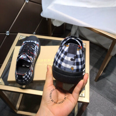 Hình ảnh mô tả chi tiết Giày thể thao Burberry dây buộc màu đen họa tiết chuột mickey :