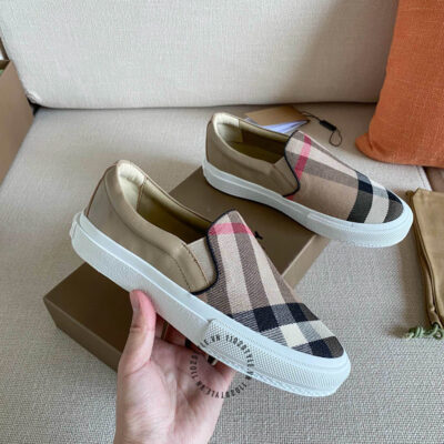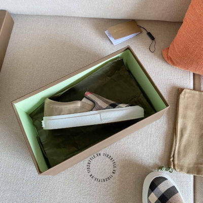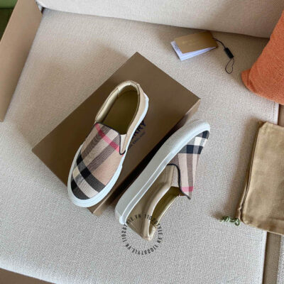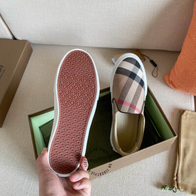 Hình ảnh mô tả chi tiết Giày Slip on Burberry unisex họa tiết kẻ sọc giá ưu đãi: