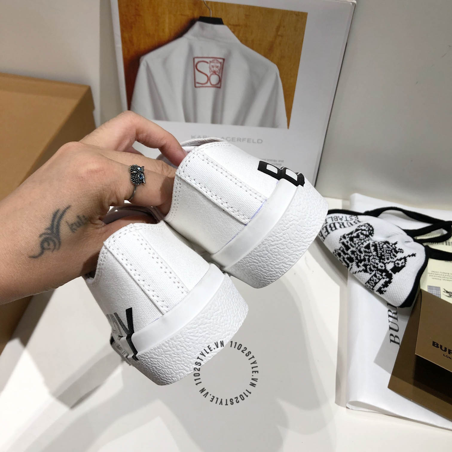 Ảnh mô tả chi tiết Giày thể thao Burberry unisex màu trắng chữ đen nổi bật :