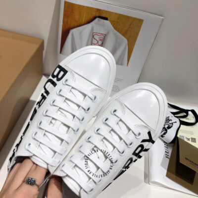 Ảnh mô tả chi tiết Giày thể thao Burberry unisex màu trắng chữ đen nổi bật :