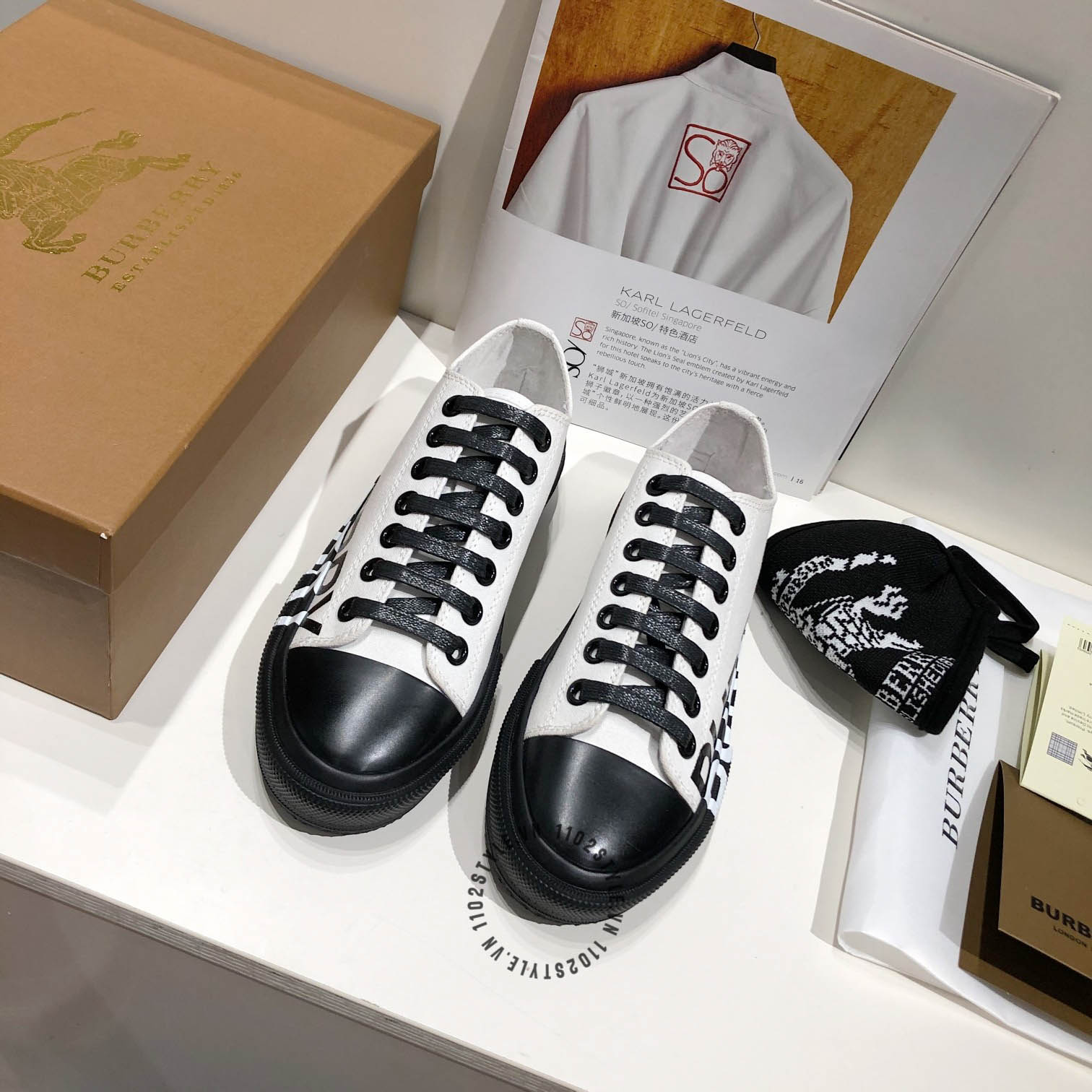 Ảnh mô tả chi tiết Giày thể thao Burberry unisex màu trắng phối đen nổi bật :