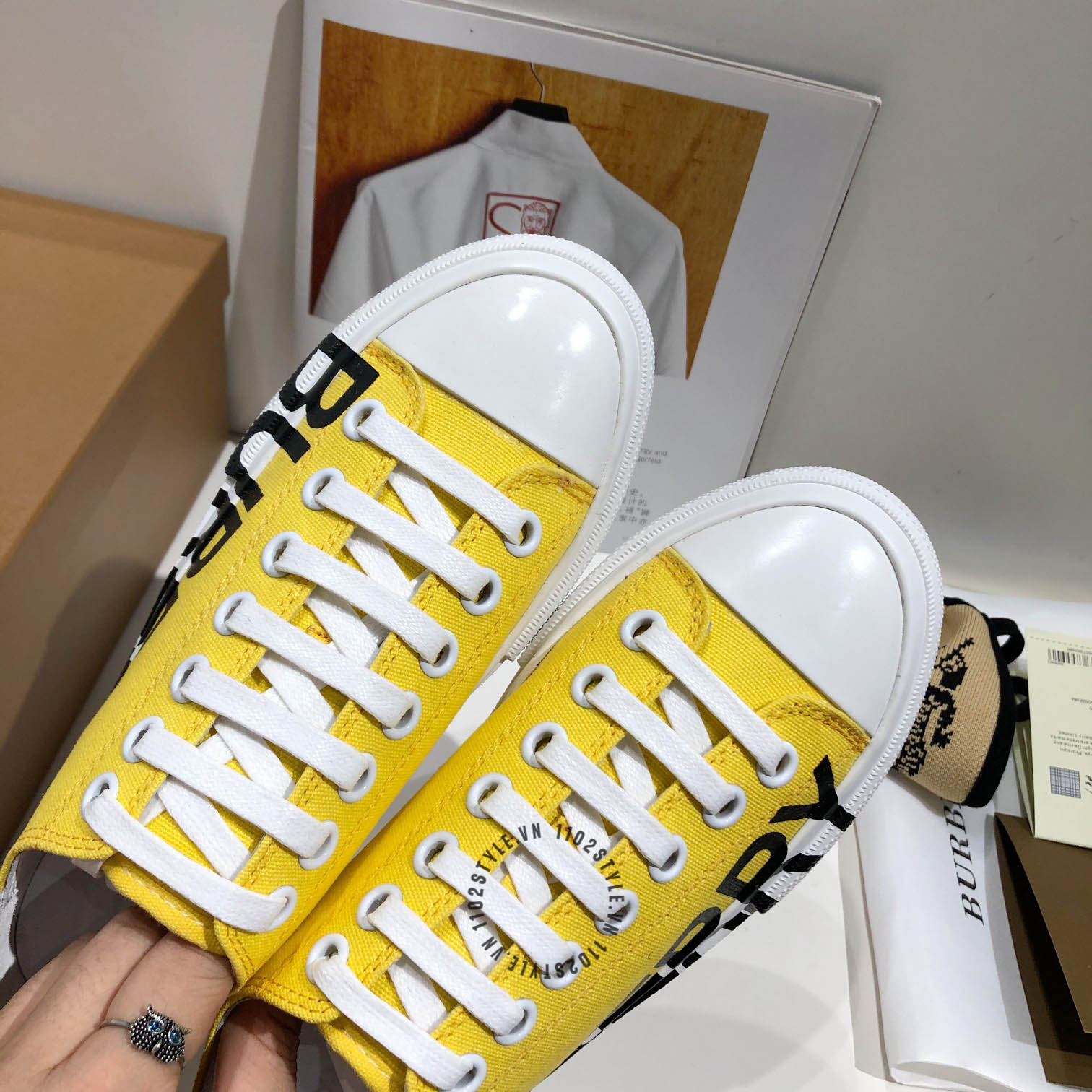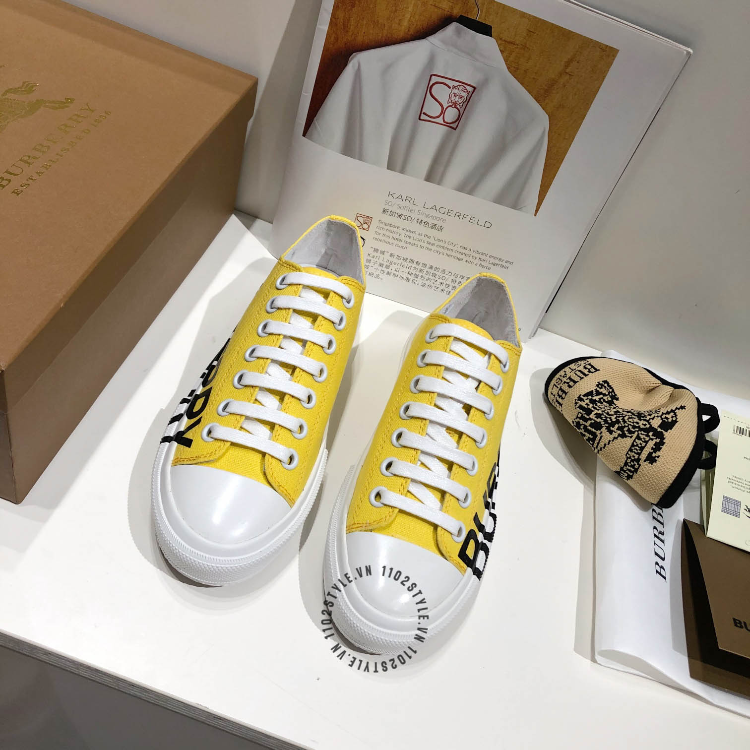 Ảnh mô tả chi tiết Giày thể thao Burberry unisex màu vàng chữ đen nổi bật giá ưu đãi :