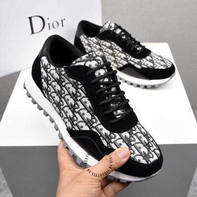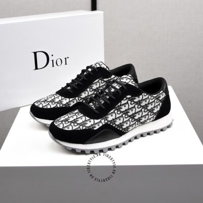 Hình ảnh sản phẩm giày thể thao Dior nam da lộn màu đen họa tiết Monogram cao cấp: