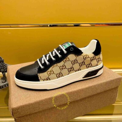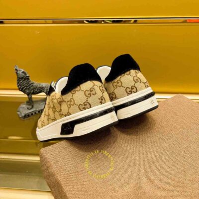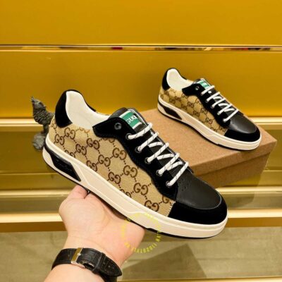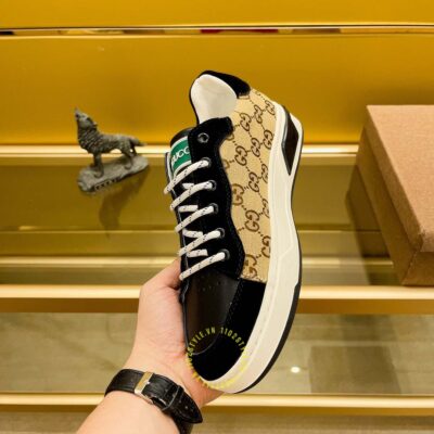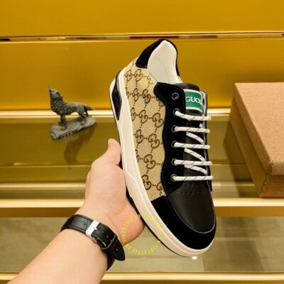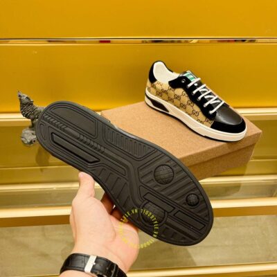 Hình ảnh chi tiết giày thể thao Gucci nam màu đen phối nâu họa tiết Monogram: