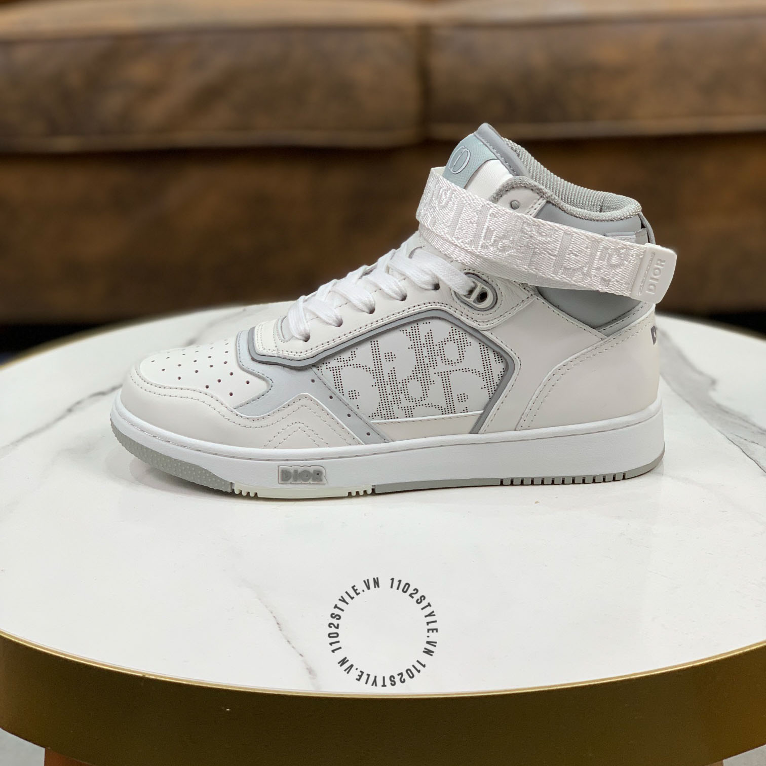Hình ảnh chi tiết giày thể thao super fake 1:1 cổ cao Dior màu trắng phối họa tiết: