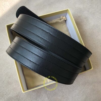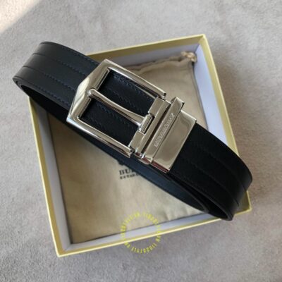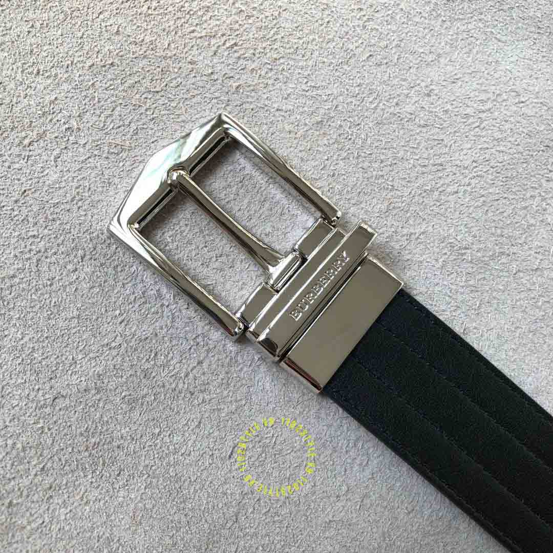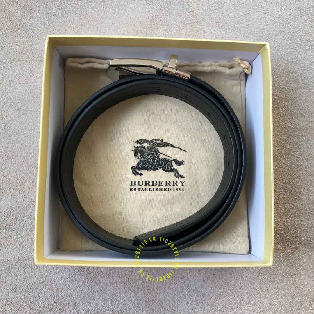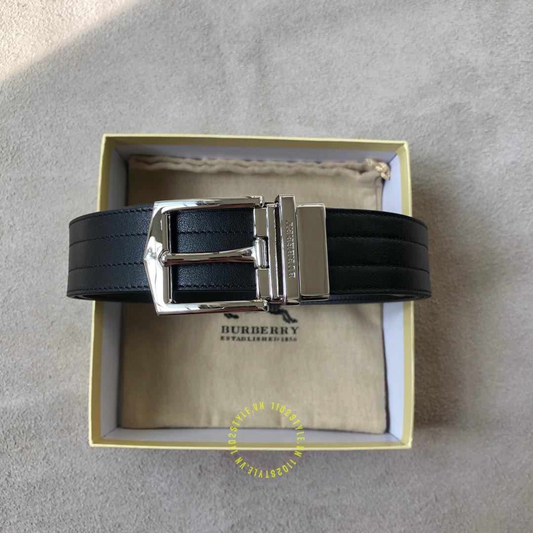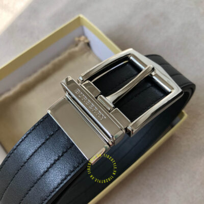Hình ảnh thắt lưng Burberry mặt khóa xỏ kim màu ghi dây da đen cao cấp: