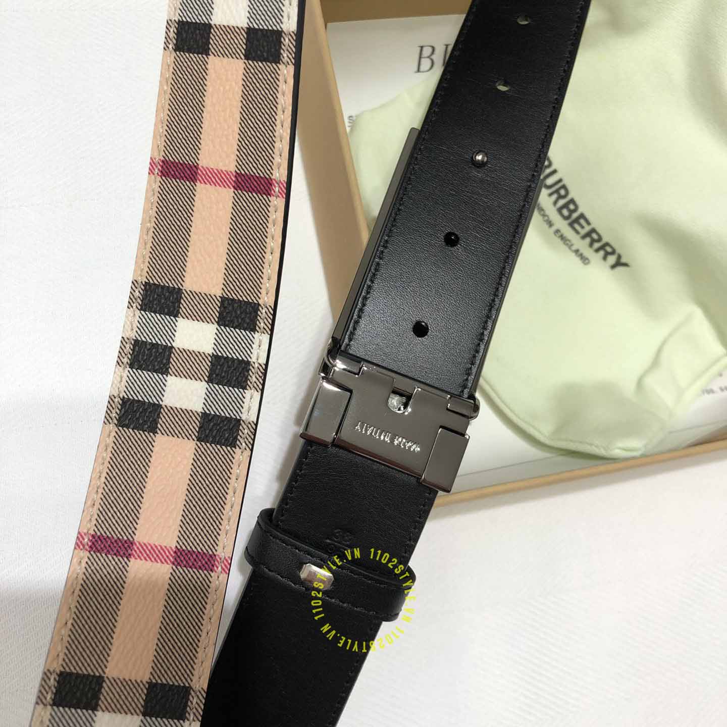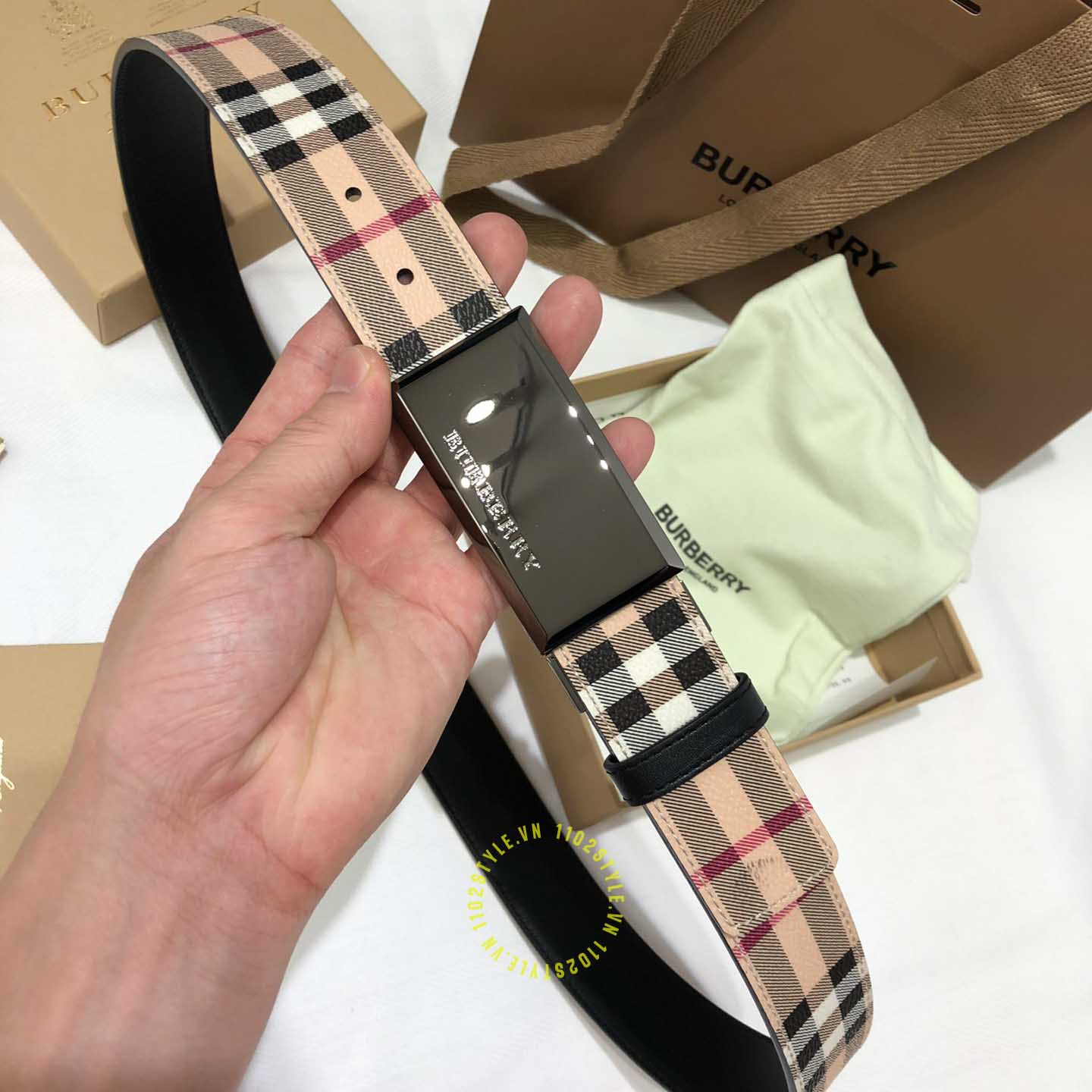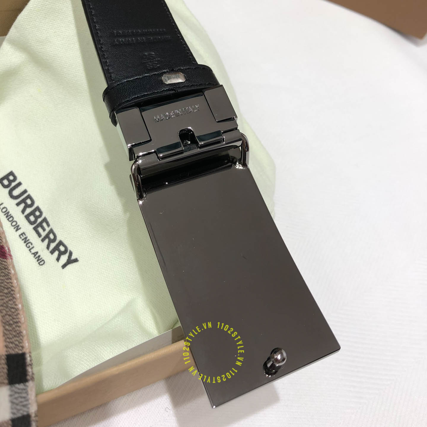 Hình ảnh sản phẩm thắt lưng Burberry nam mặt khóa màu đen dây nâu kẻ sọc: