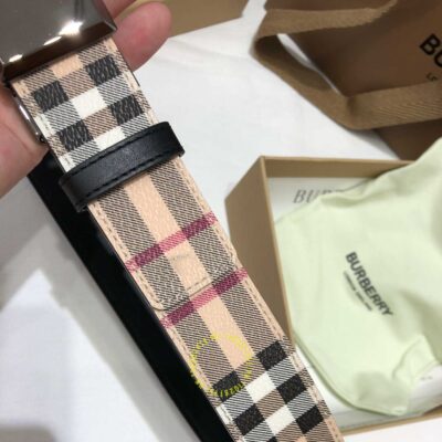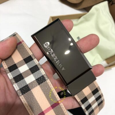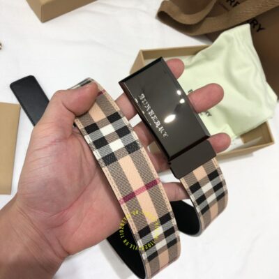 Hình ảnh sản phẩm thắt lưng Burberry nam mặt khóa màu đen dây nâu kẻ sọc:
