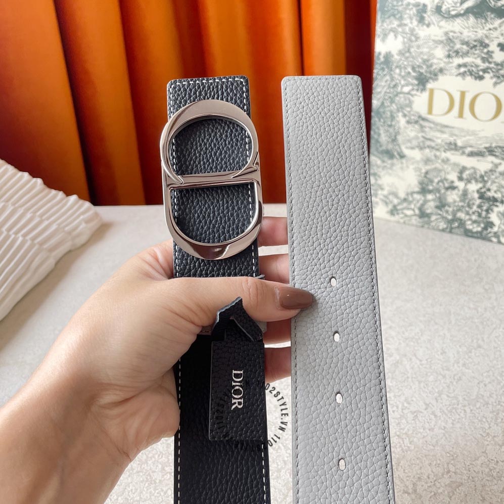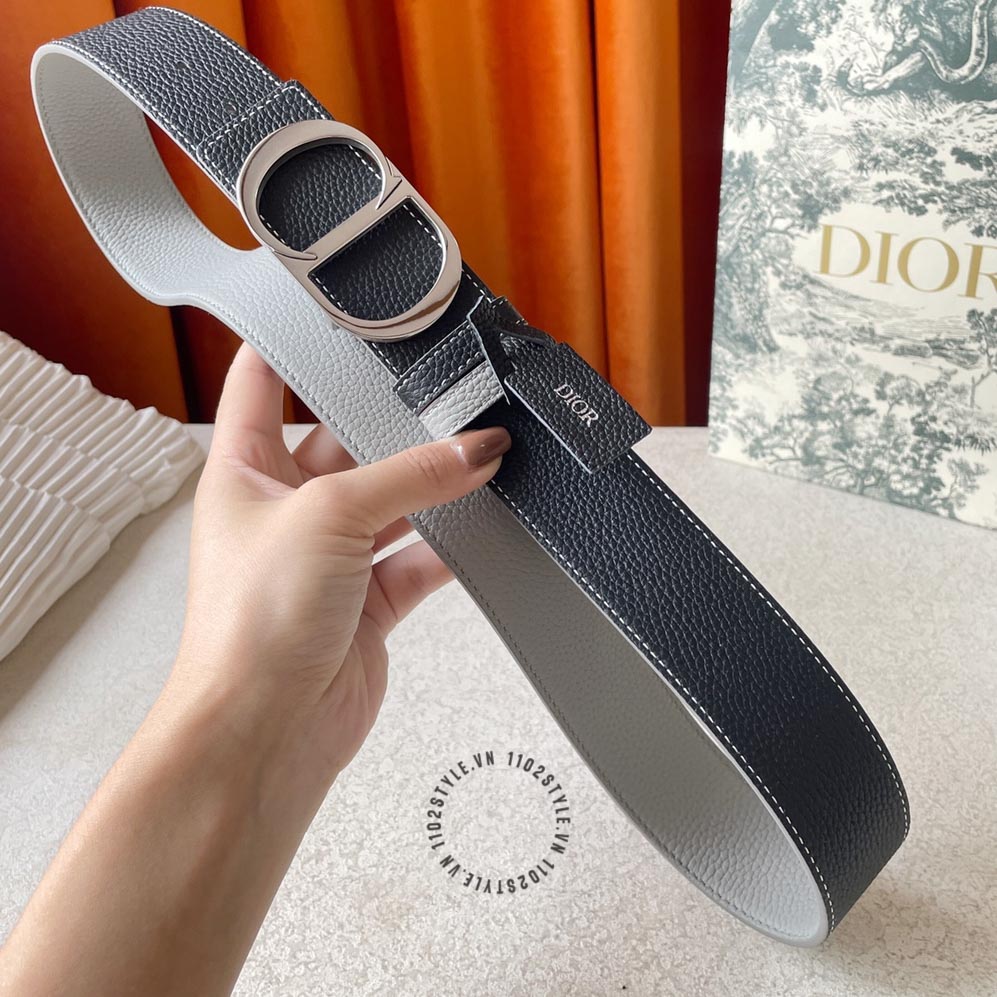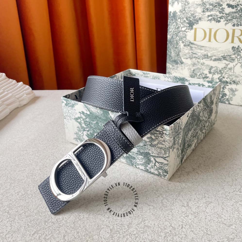 Hình ảnh sản phẩm thắt lưng Dior nam mặt khóa màu bạc dây da đen sần replica 1:1:
