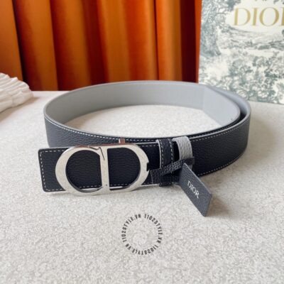 Hình ảnh sản phẩm thắt lưng Dior nam mặt khóa màu bạc dây da đen sần replica 1:1: