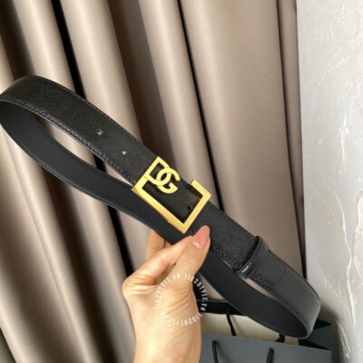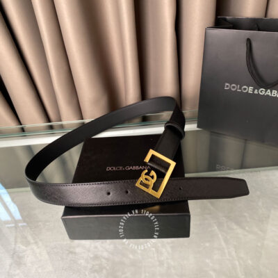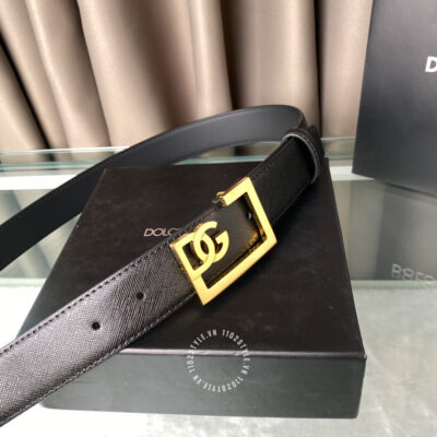 Hình ảnh chi tiết thắt lưng Dolce&Gabbana nam mặt kim loại vàng dây đen giá tốt: