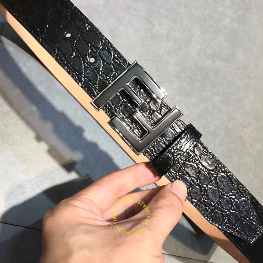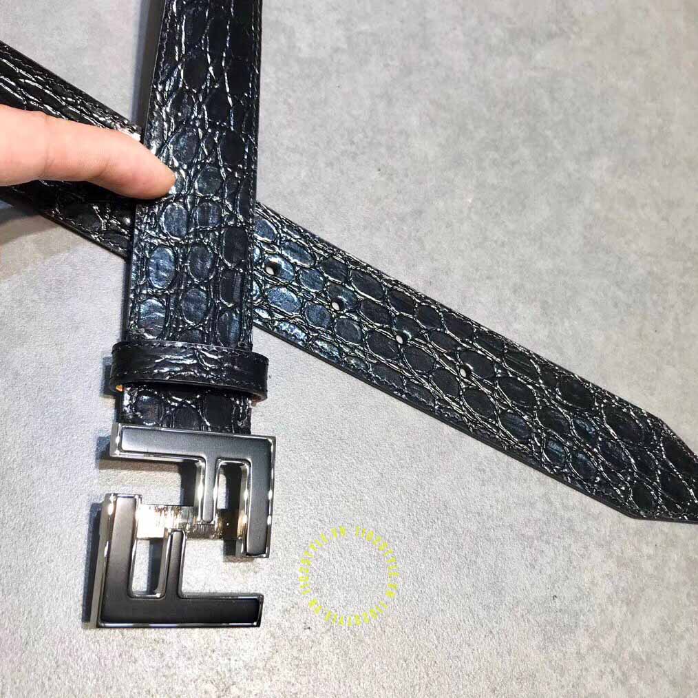 Hình chi tiết thắt lưng Fendi rep 1:1 chính hãng mặt khóa bấm màu đen: