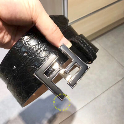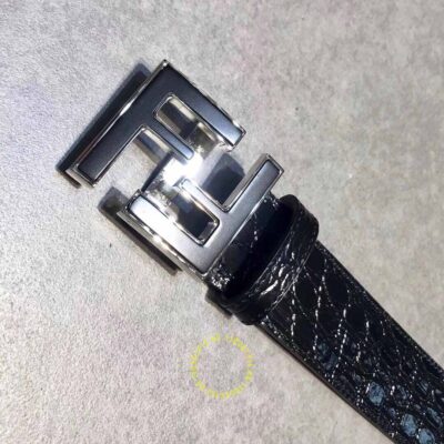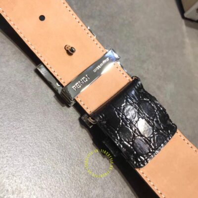 Hình chi tiết thắt lưng Fendi rep 1:1 chính hãng mặt khóa bấm màu đen: