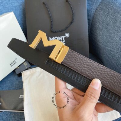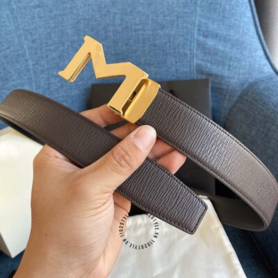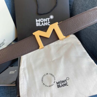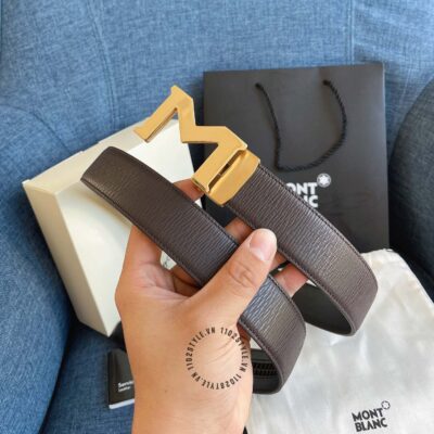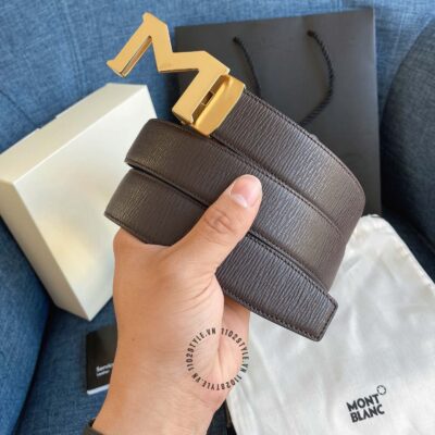 Ảnh mô tả chi tiết Thắt lưng Montblanc nam mặt khóa chữ M màu vàng da sần: