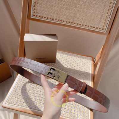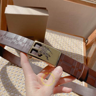 Ảnh chi tiết thắt lưng nam Burberry mặt khóa vàng họa tiết kỵ sĩ dây da nâu: