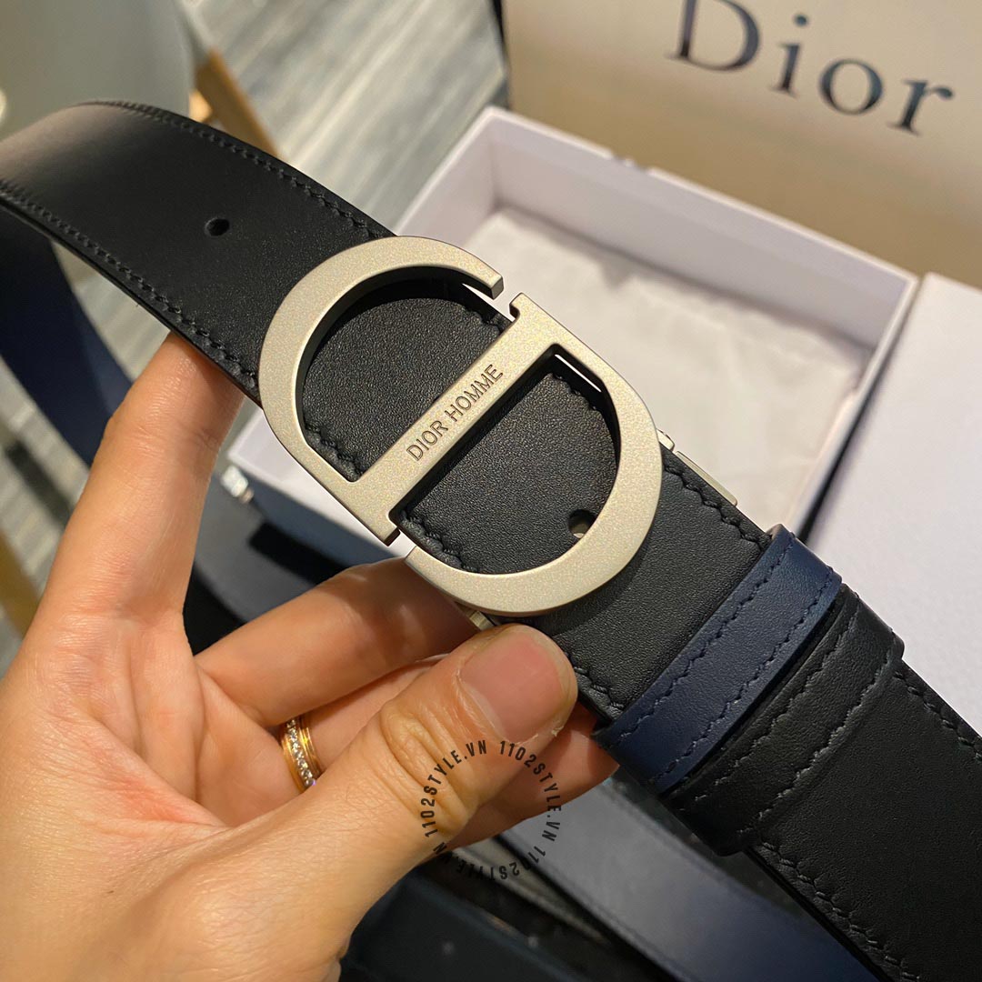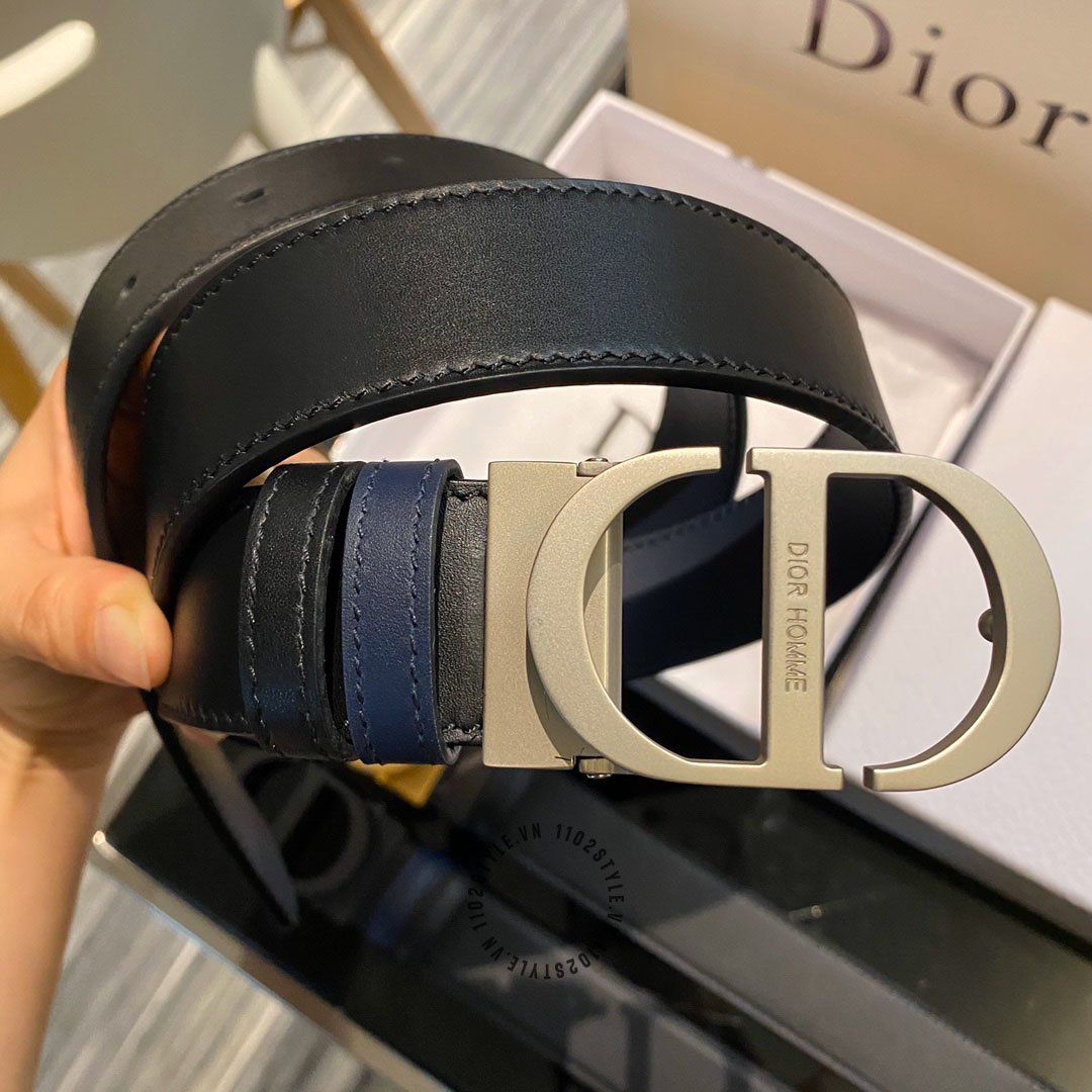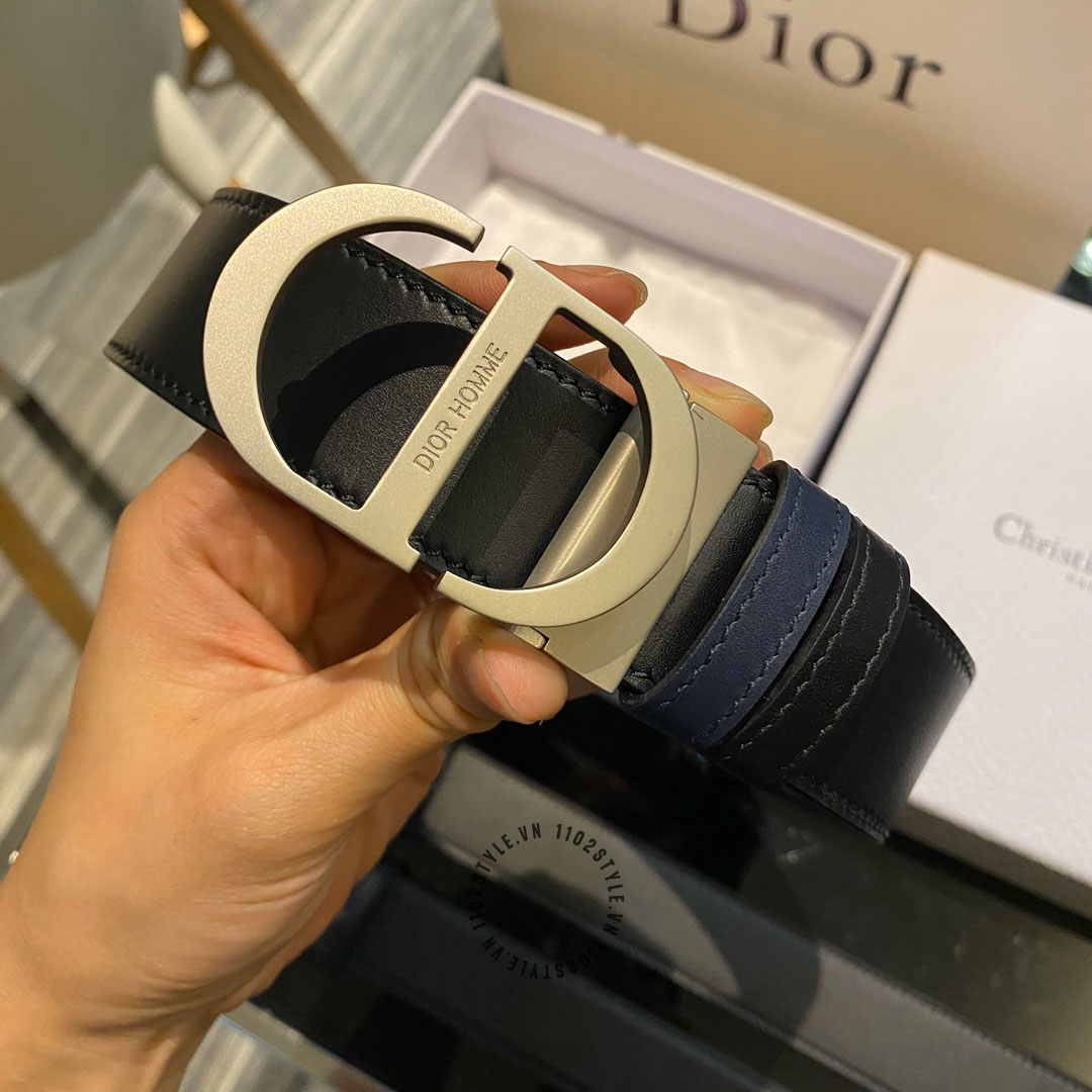 Hình ảnh sản phẩm thắt lưng nam hàng hiệu Dior dây da đen mặt khóa màu ghi xám: